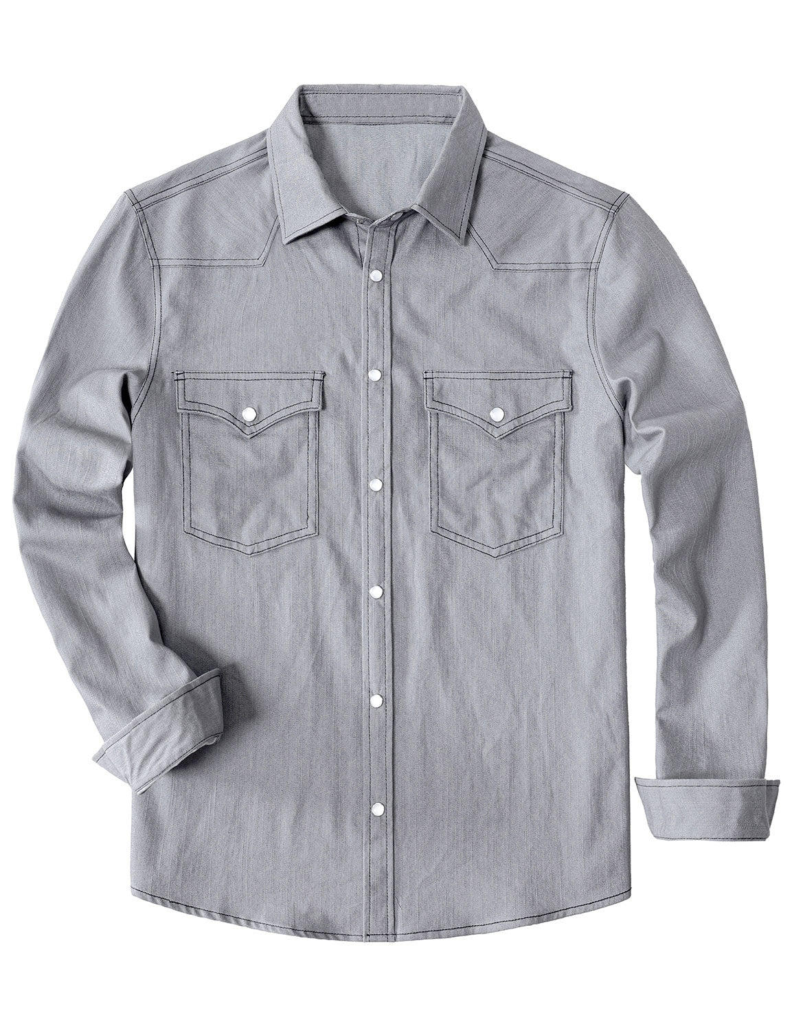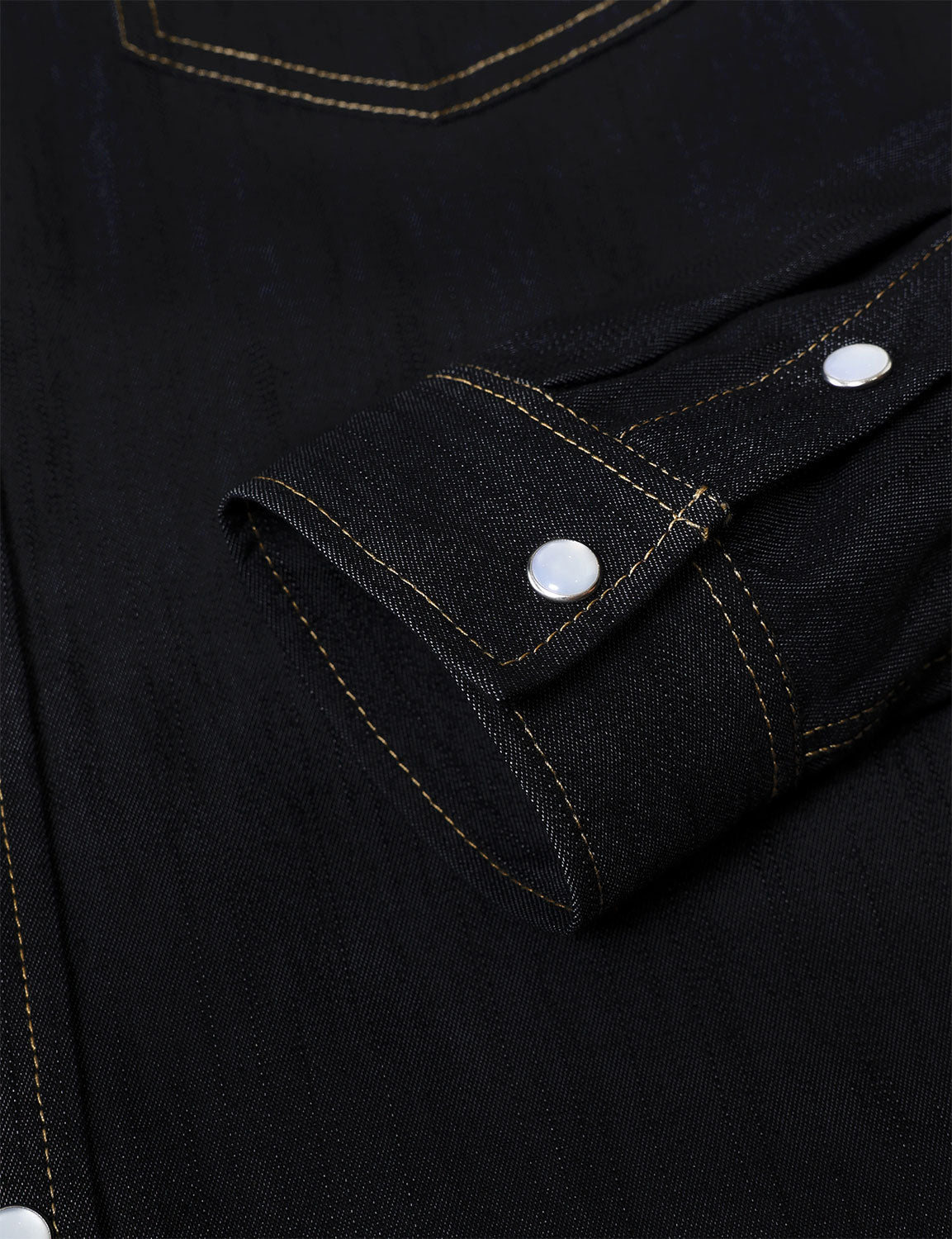 Men’s Cowboy Denim Pearl Snap Long Sleeve Shirt