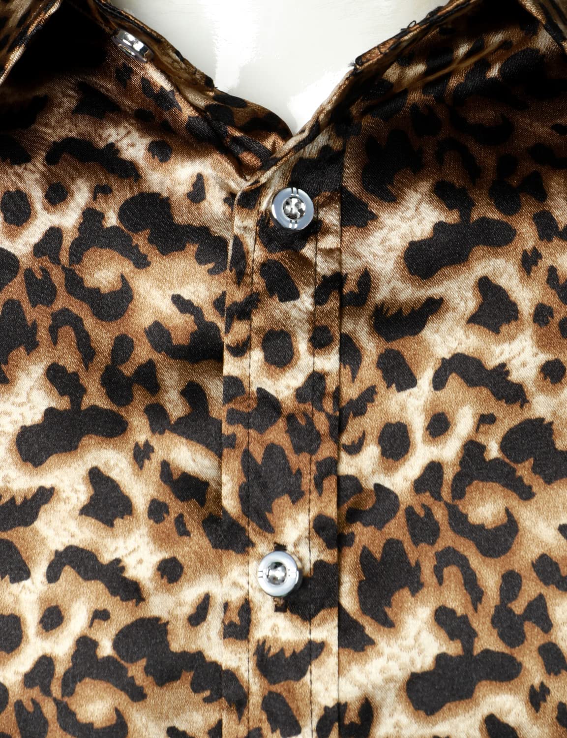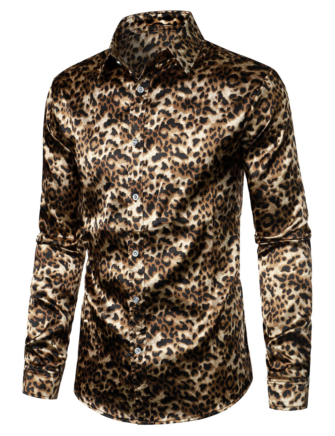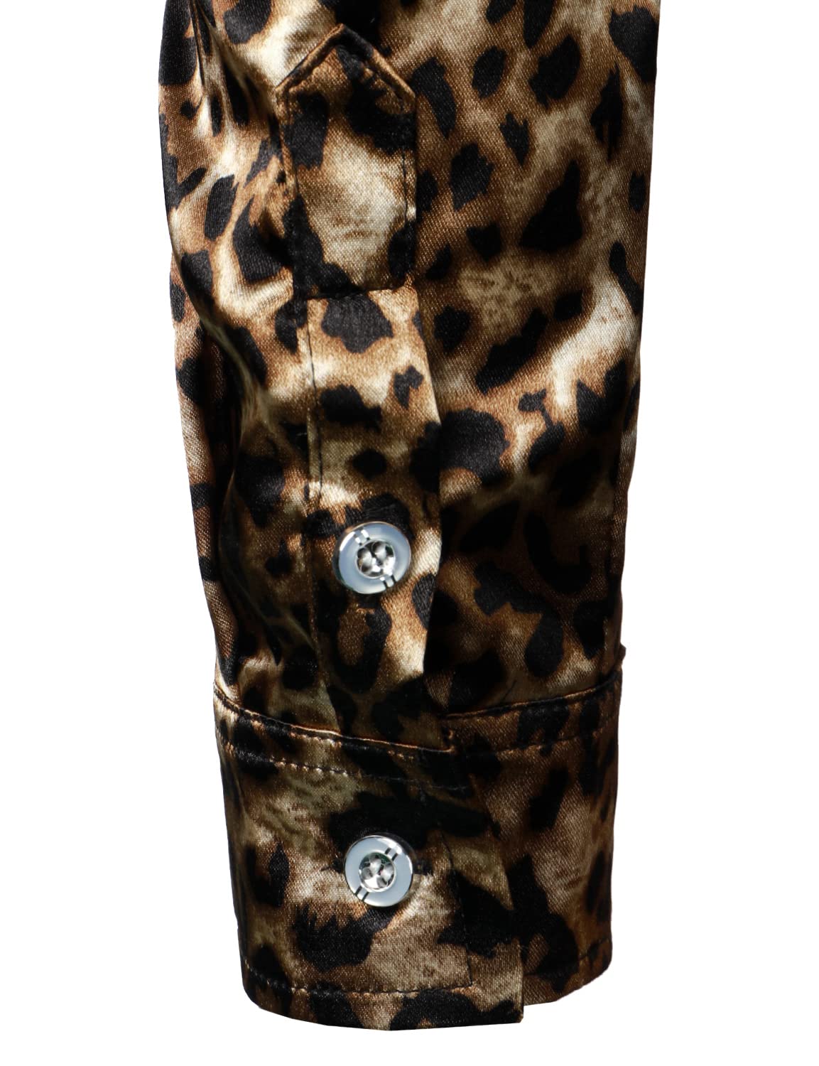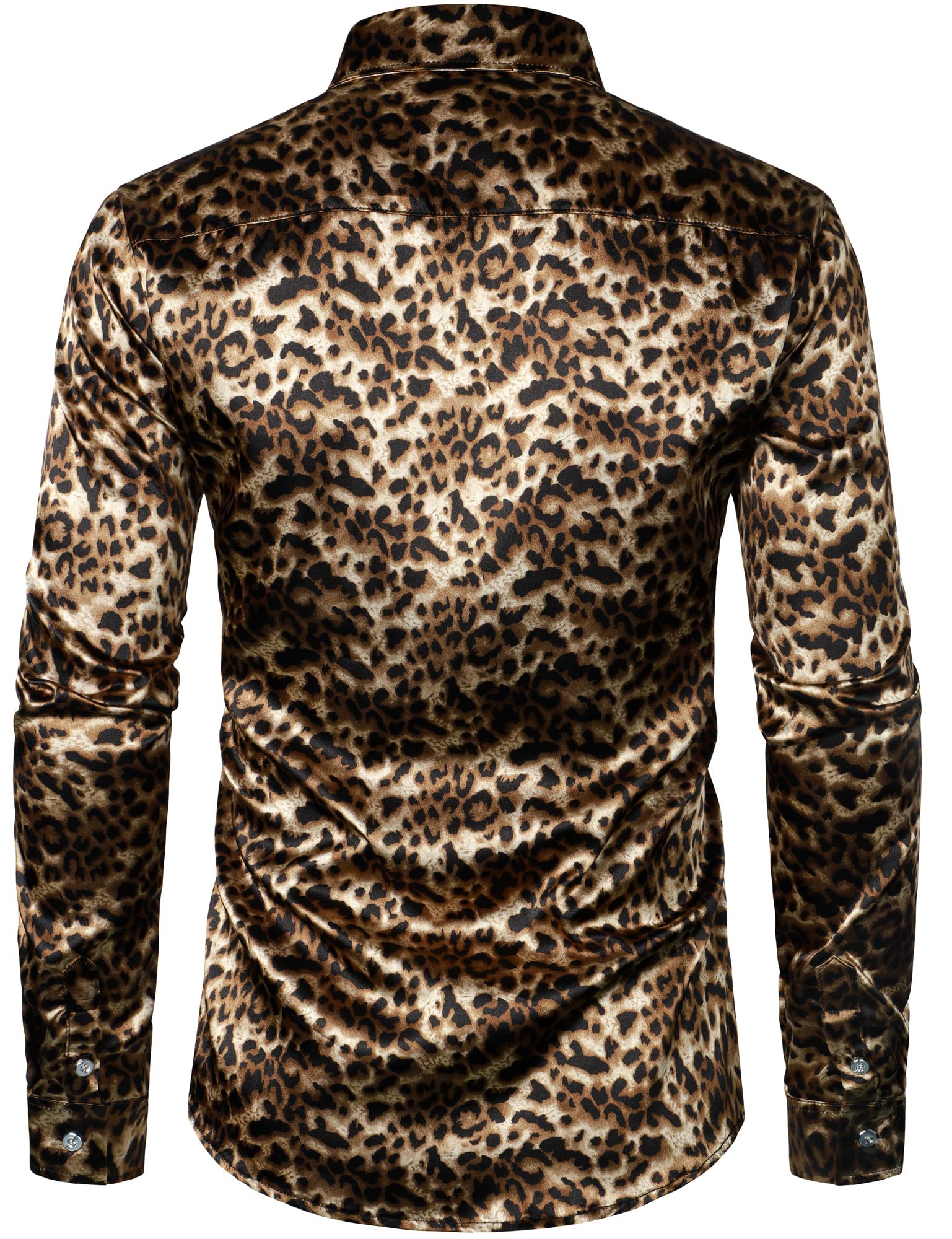 Men's Retro Leopard Button Up Brown Long Sleeve Shirt