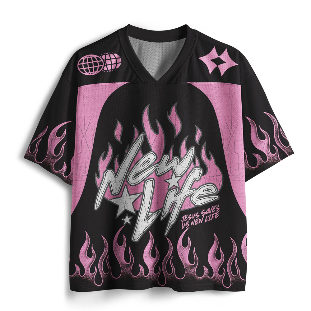 Jesus Saves Us New Life Christian White Mesh Jersey