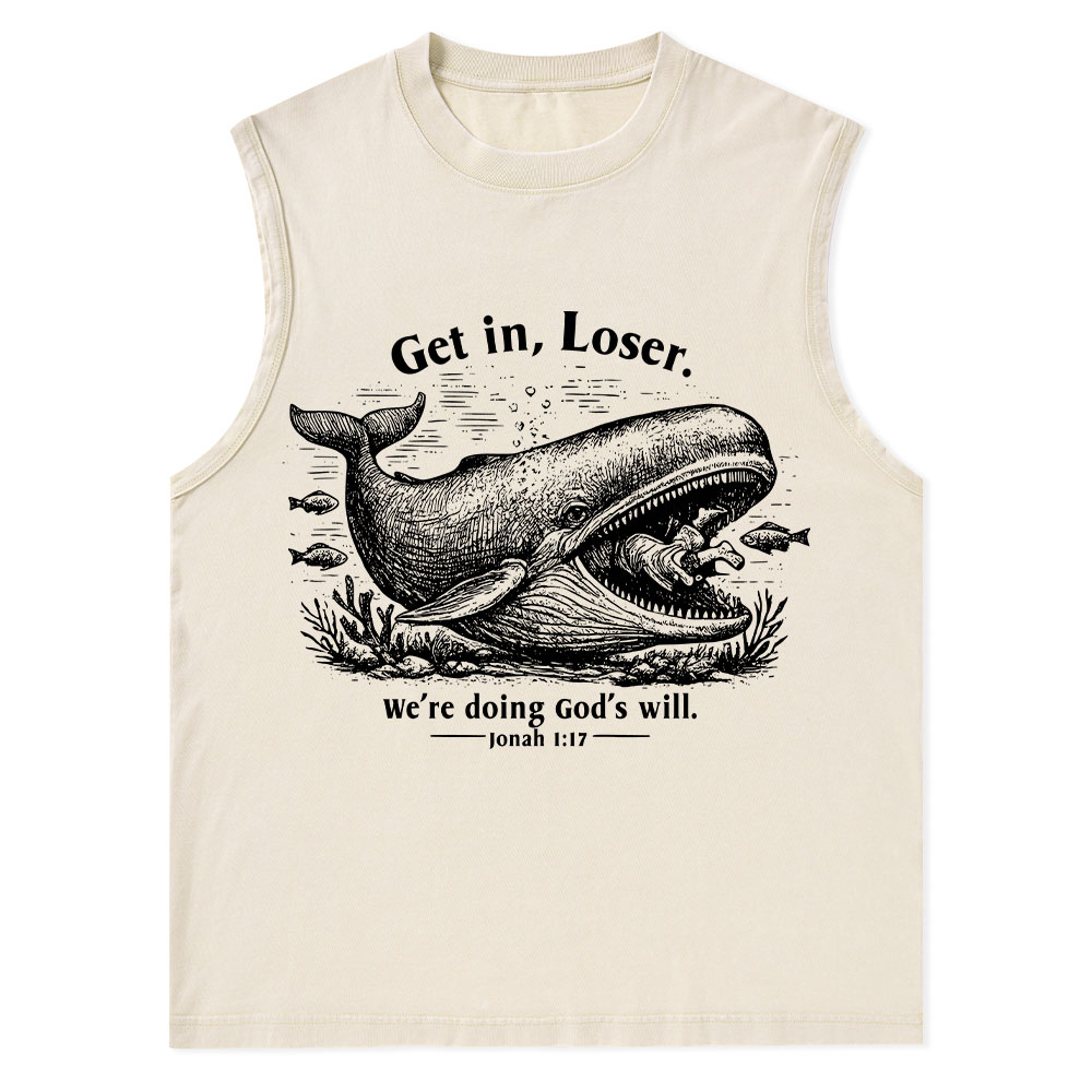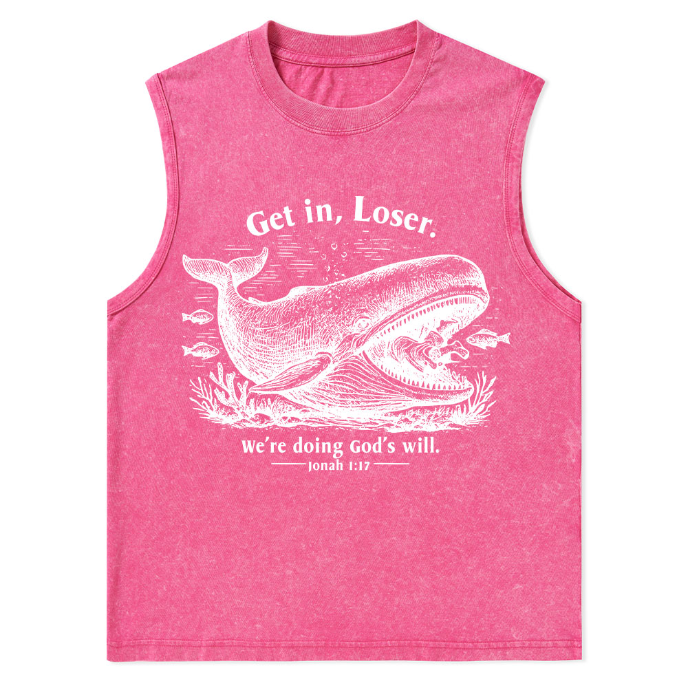 Get In Loser We're Doing God's Will Christian Washed Tank Top
