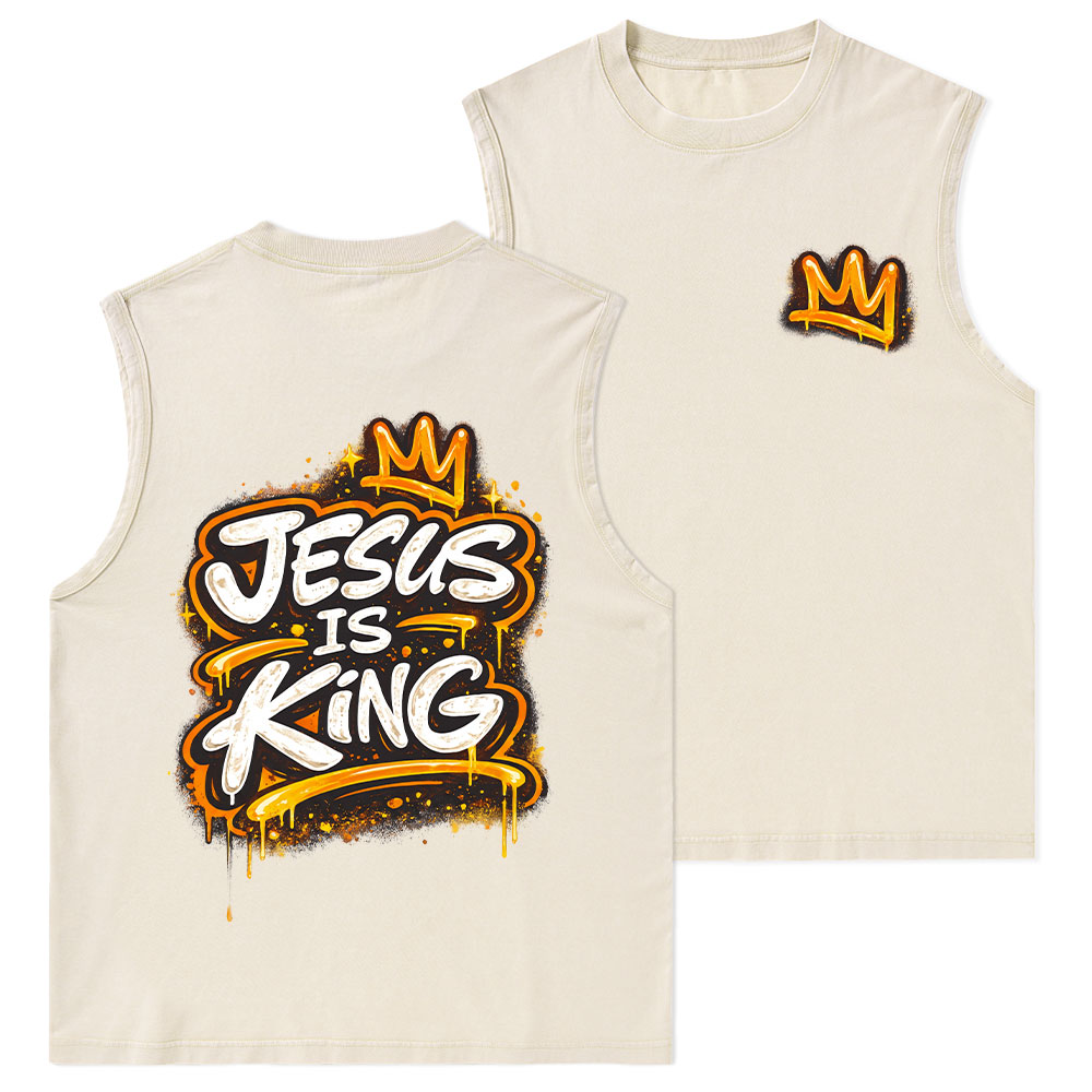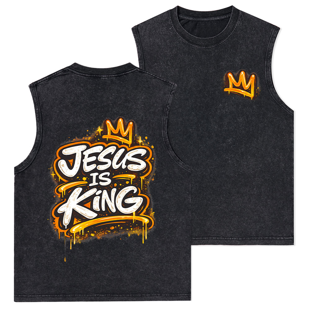 Jesus Is King Christian Washed Tank Top