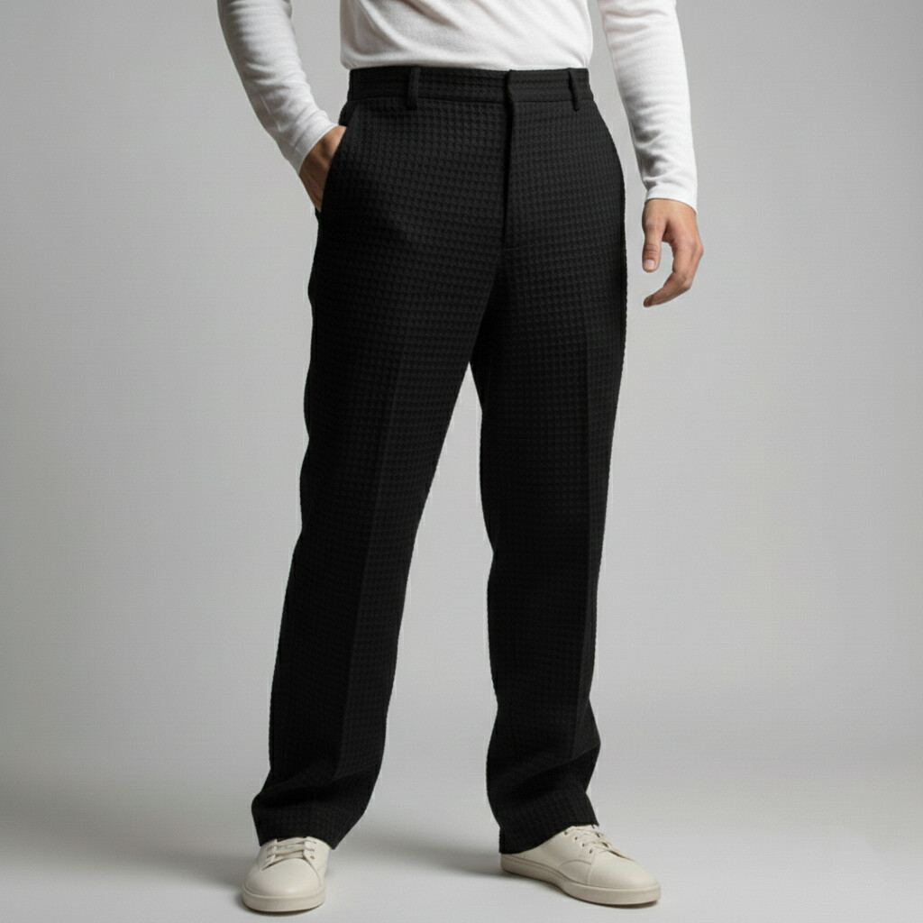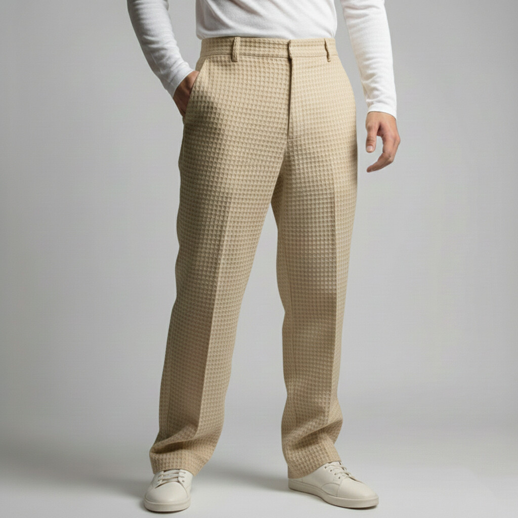Men's Business Casual Solid Waffle Slant Pocket Straight Leg Pants