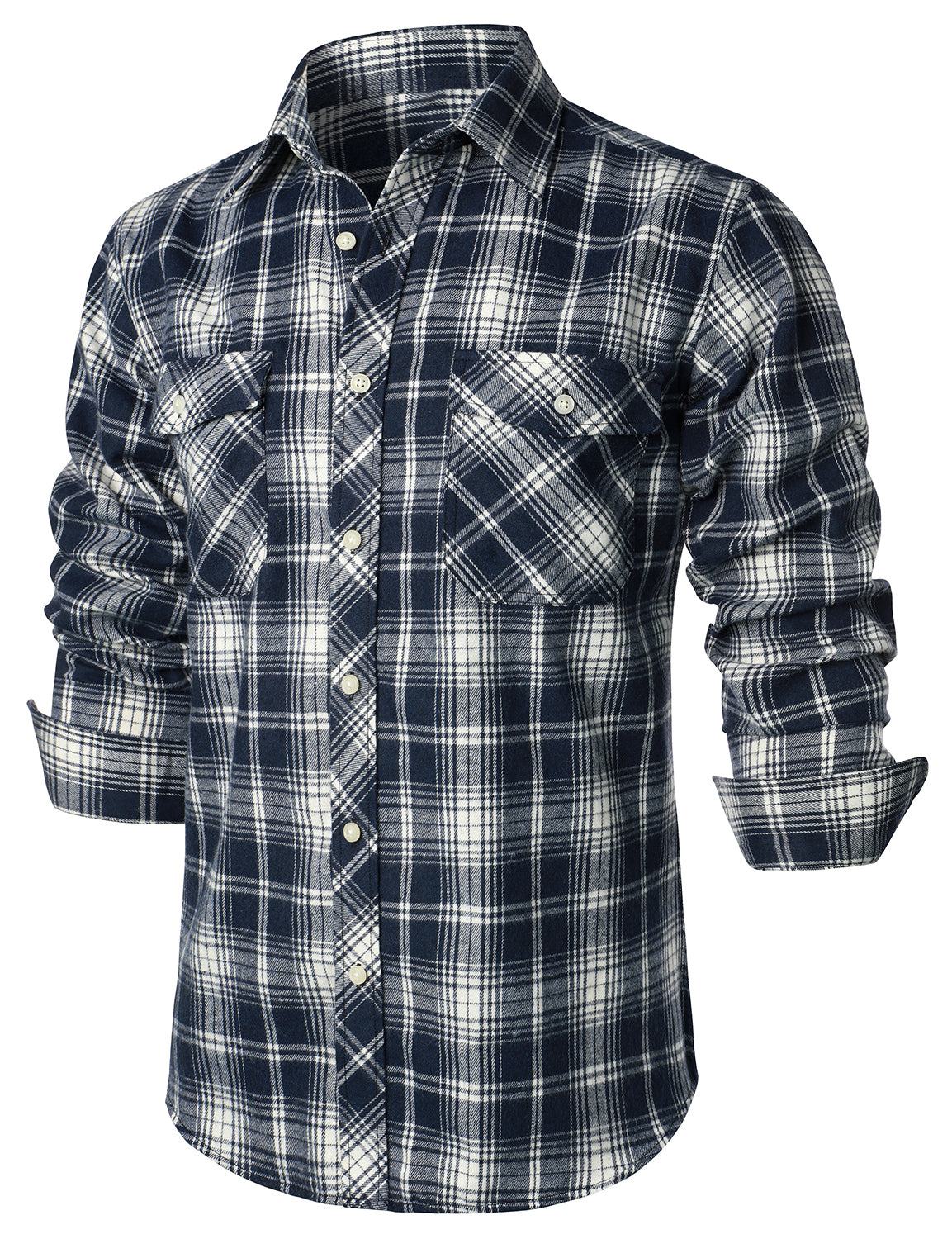 Men's Flannel Double Pocket Checkered Button Up Long Sleeve Casual Plaid Shirt
