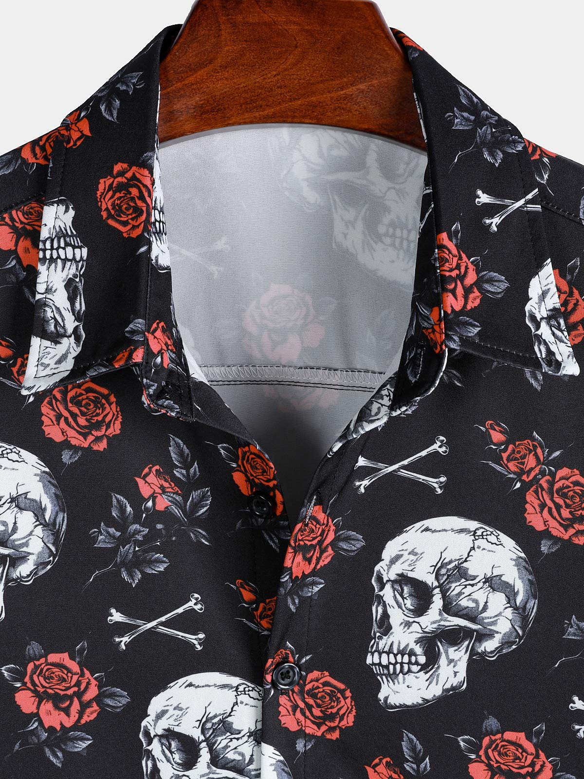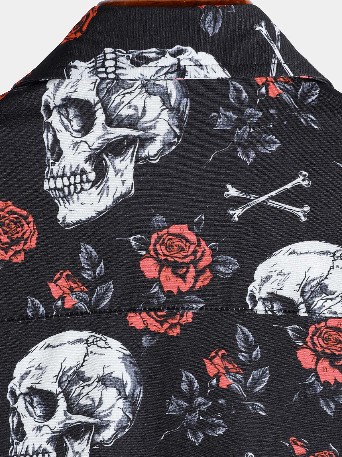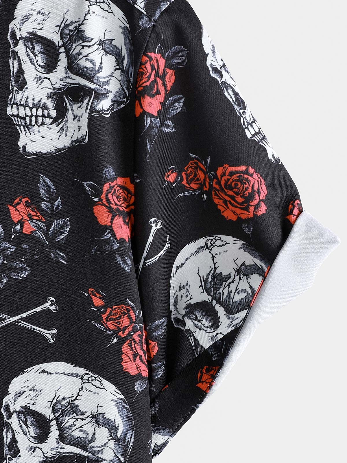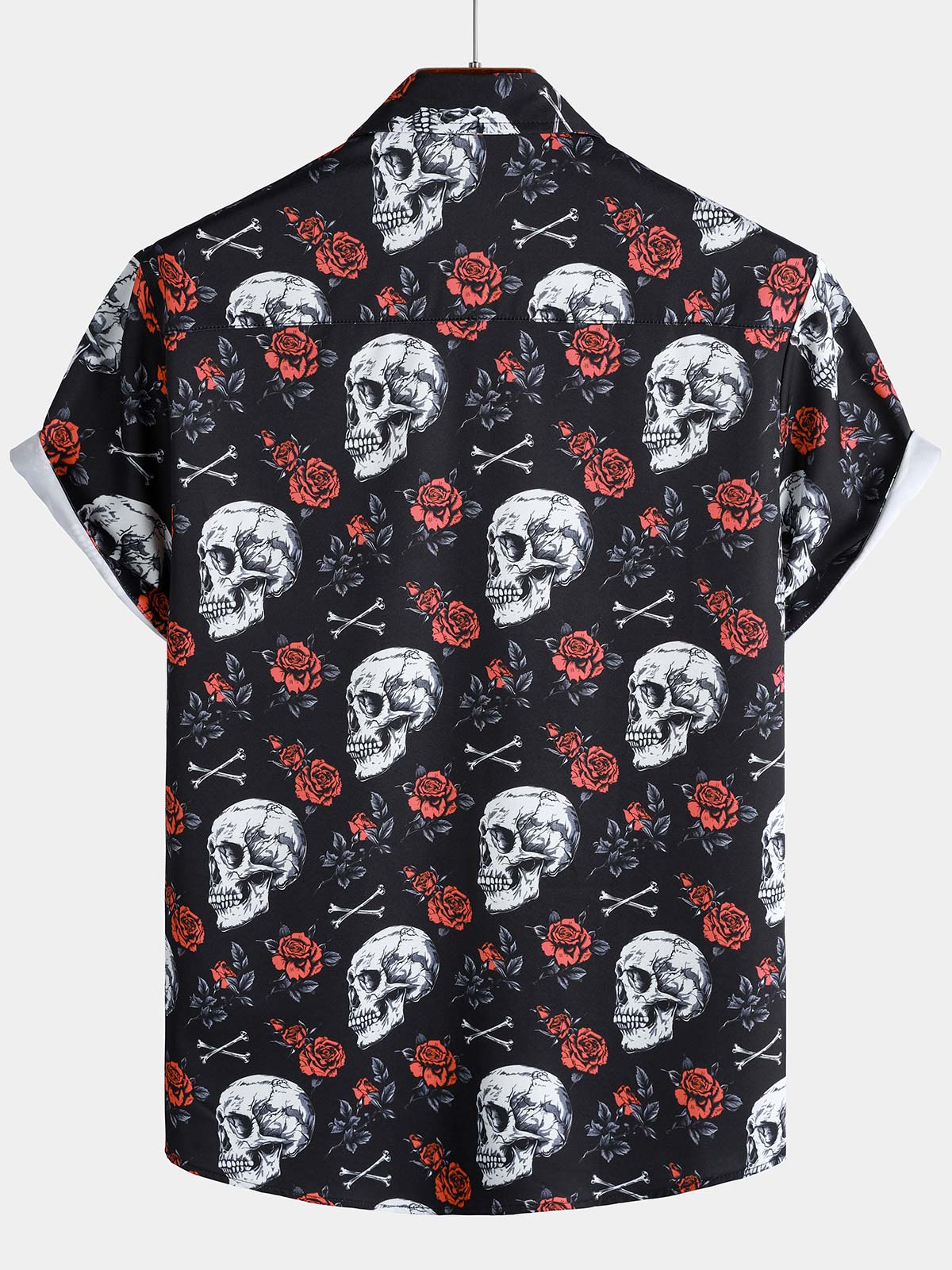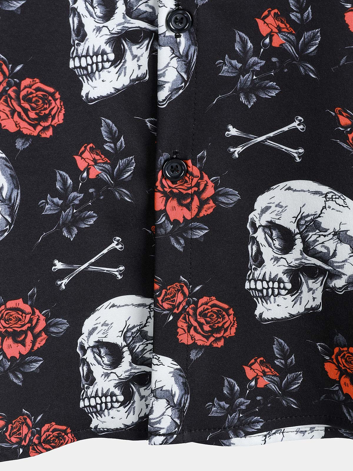 Men's Rose Flower Skull Graphic Button Up Short Sleeve Punk Rock Art Shirt