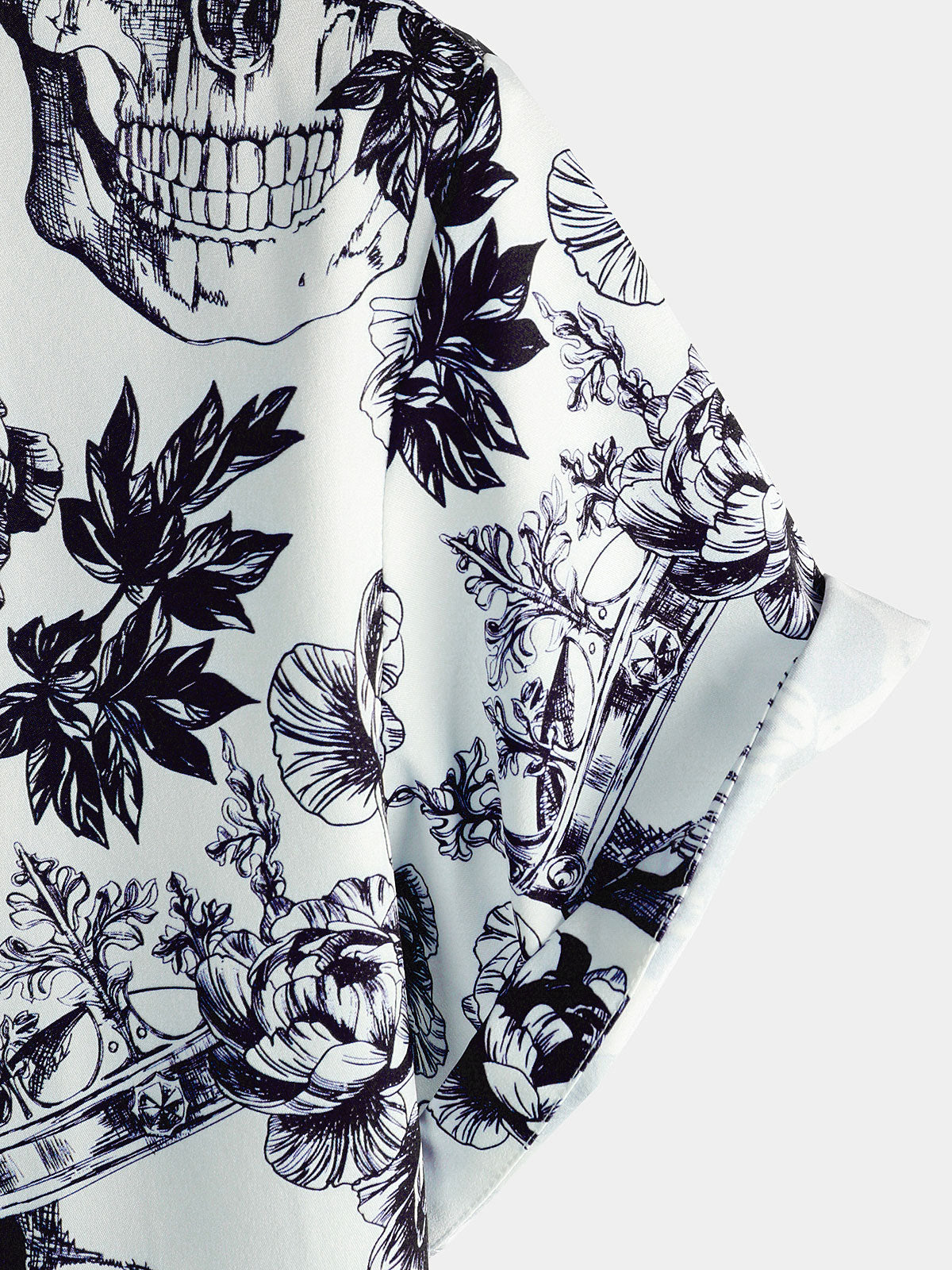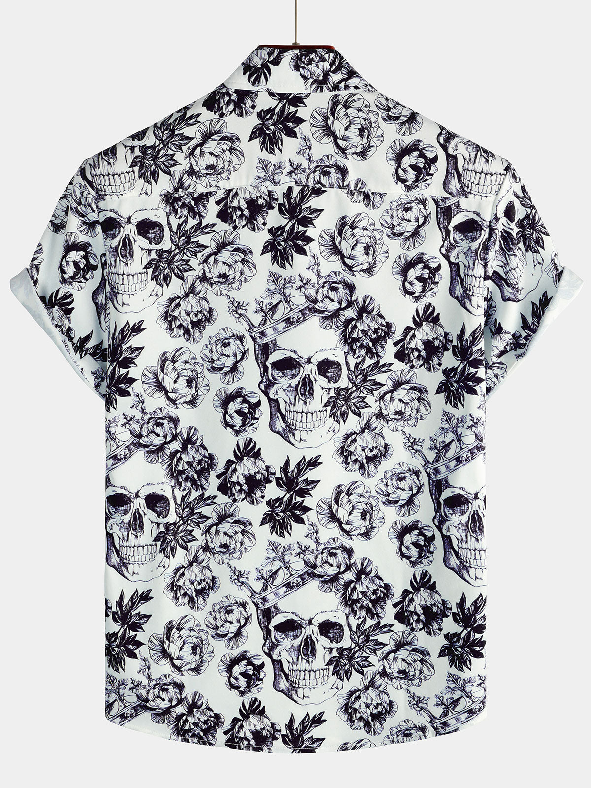Men's Black Punk Rock Crown Floral Skull Print Short Sleeve Shirt
