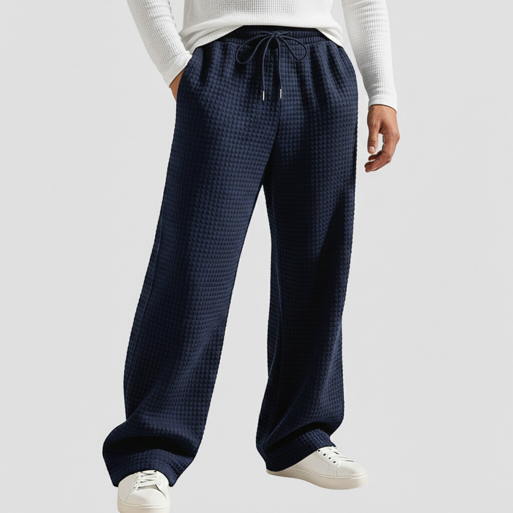Men's Casual Waffle Drawstring Slant Pocket Straight Leg Pants