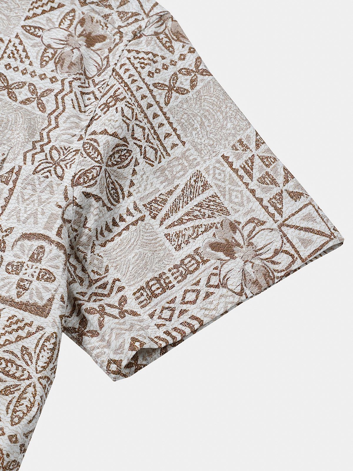 Men's Short Sleeve Cotton Breathable Bohemian Retro Geometric Print Resort Shirt