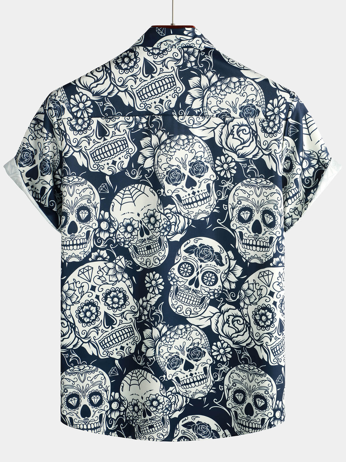Men's Sugar Skull Punk Rock Holiday Cool Beach Short Sleeve Summer Shirt