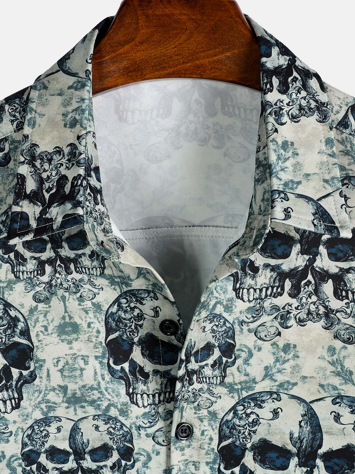 Men's Skull Punk Rock Holiday Beach Cotton Breathable Cool Summer Short Sleeve Shirt