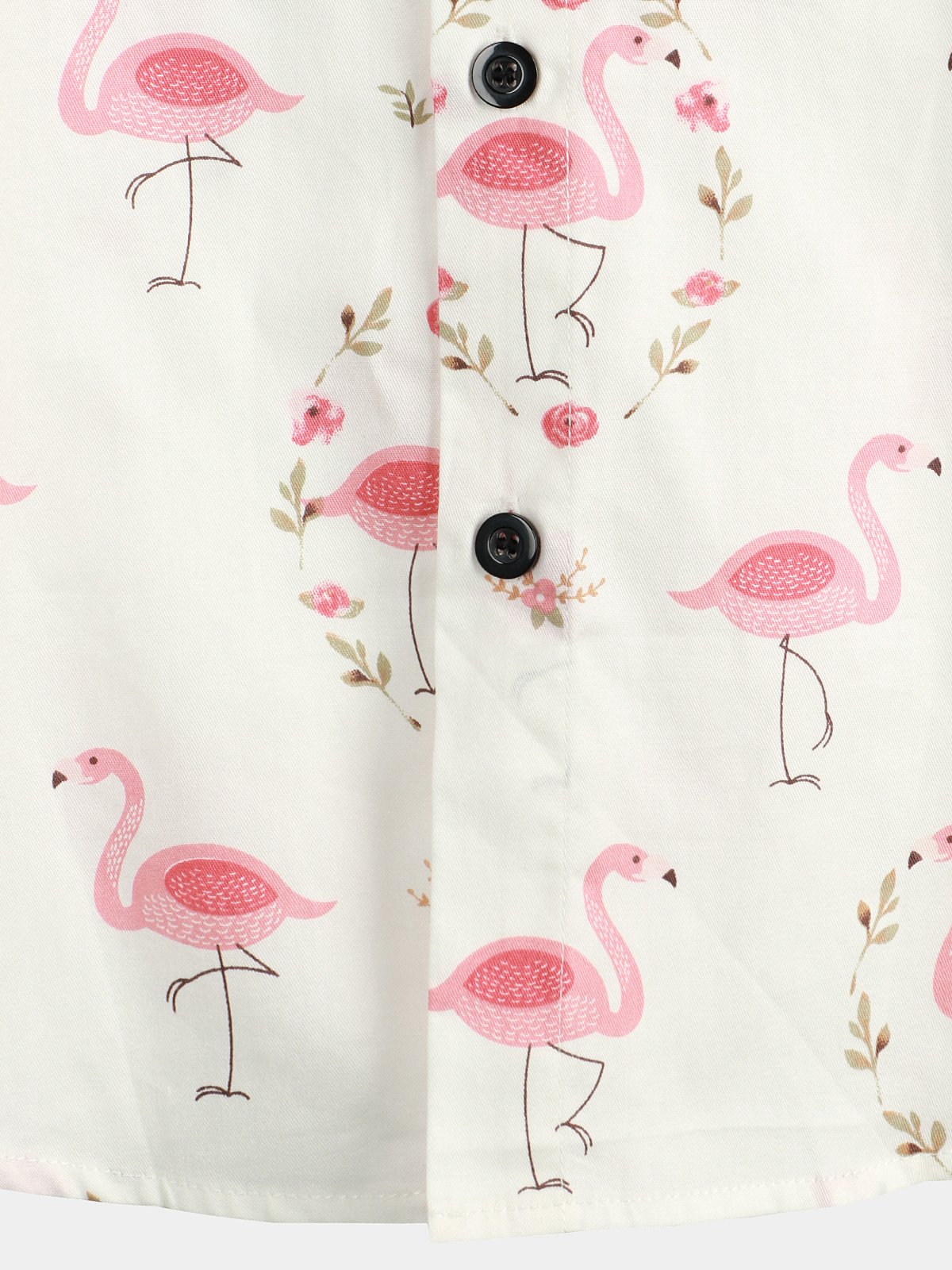 Men's Pink Flamingo Print Cotton Short Sleeve Shirt
