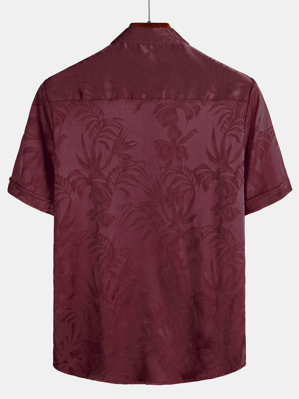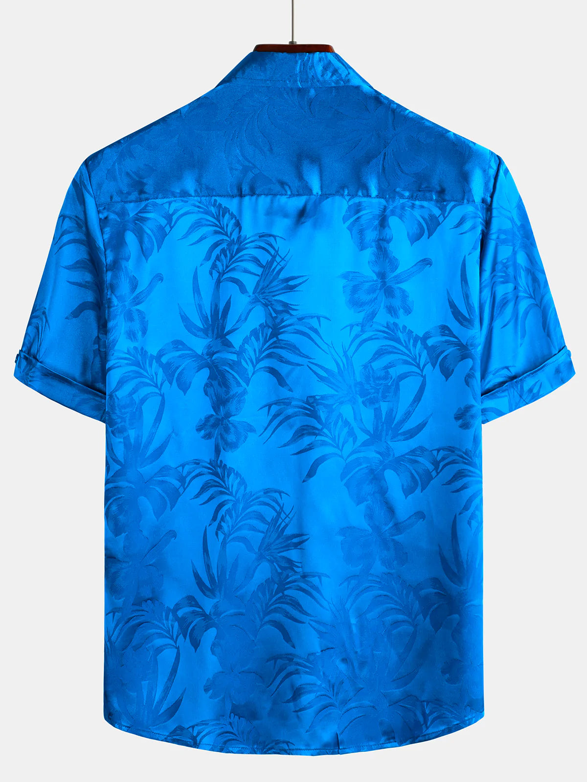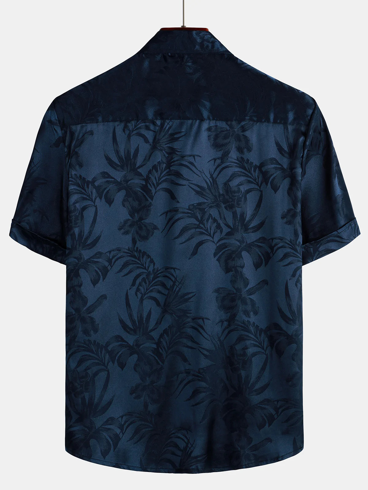 Men's Jacquard Flowers Button Up Pocket Floral Summer Cool Short Sleeve Tops Beach Vacation Shirt