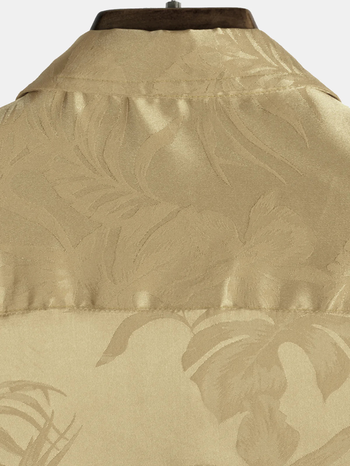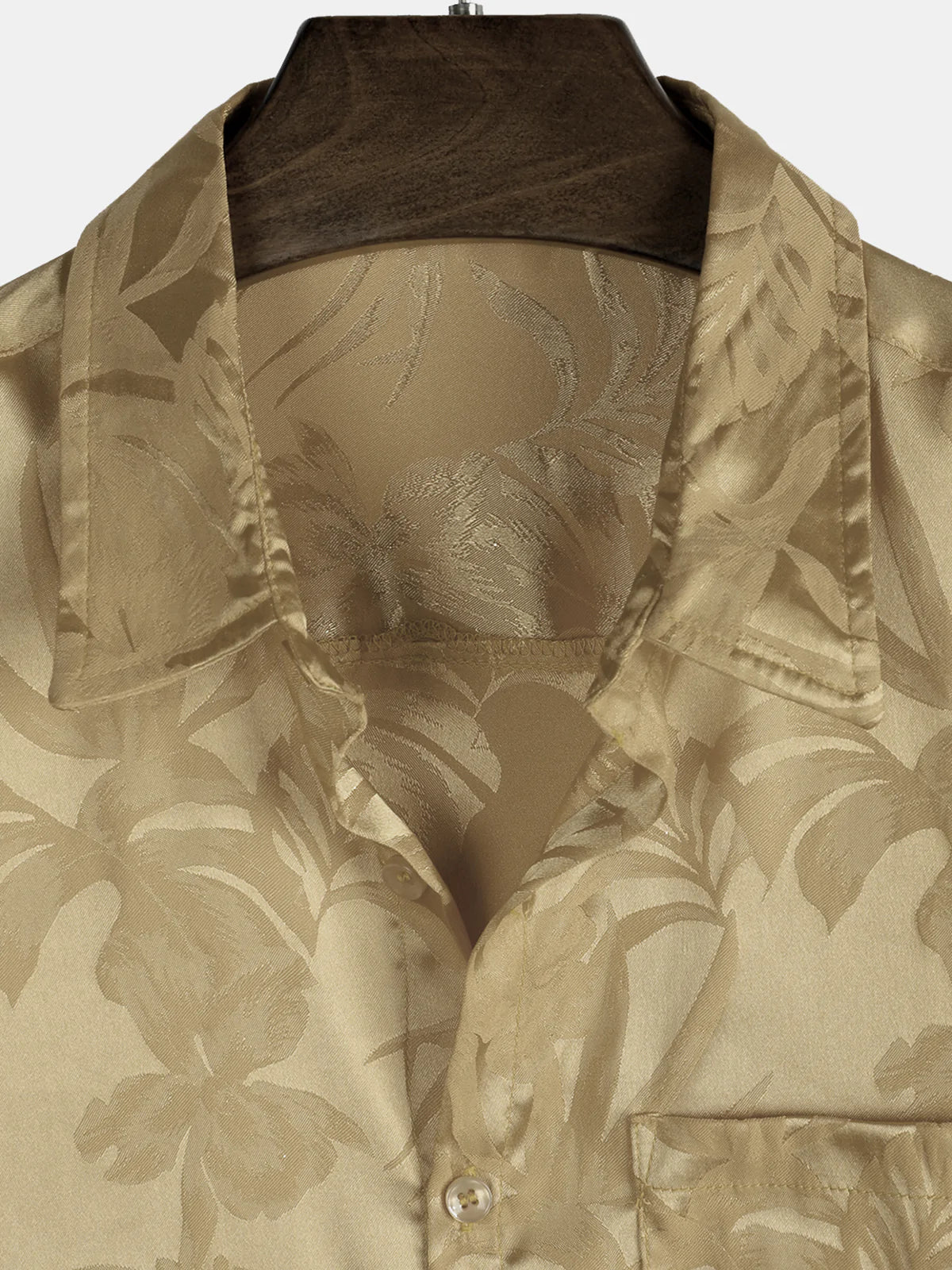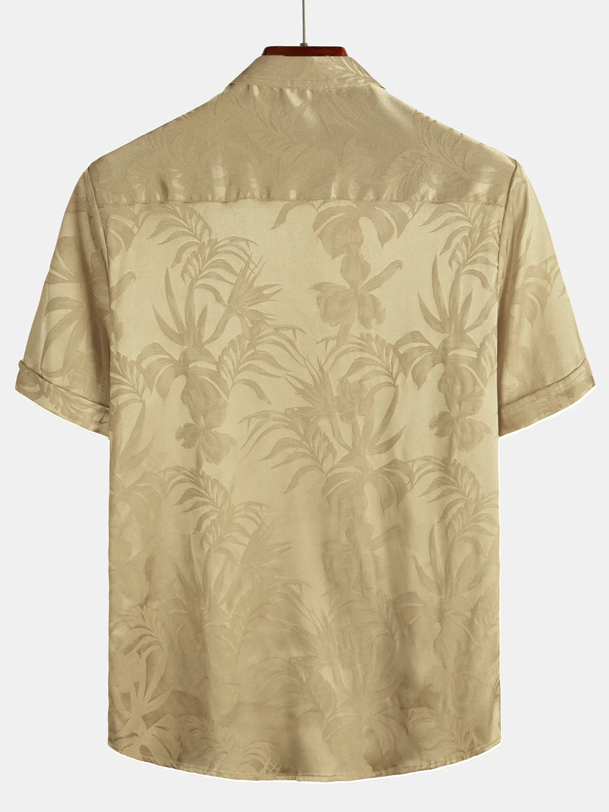 Men's Jacquard Flowers Button Up Pocket Floral Summer Cool Short Sleeve Tops Beach Vacation Shirt