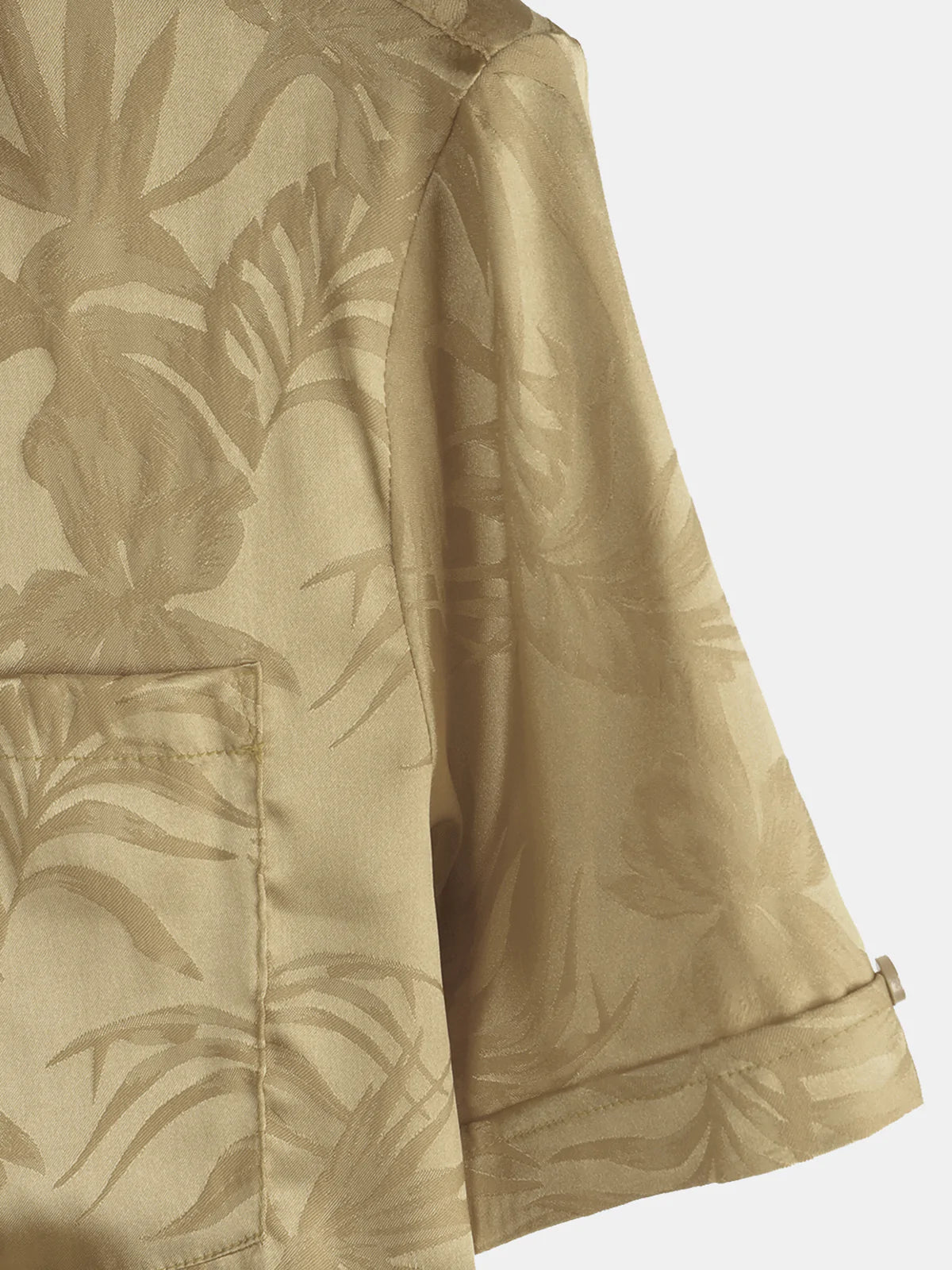 - Button up short sleeve shirt with front pocket and unique jacquard design