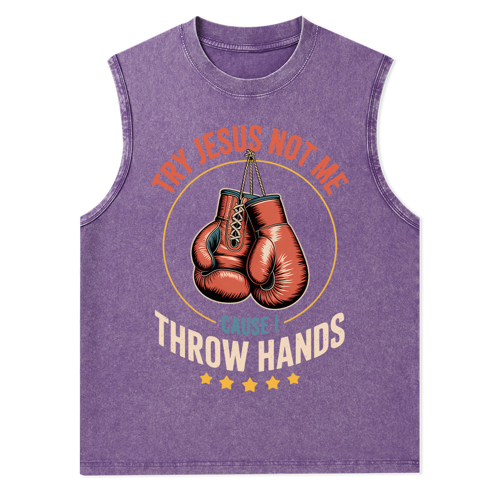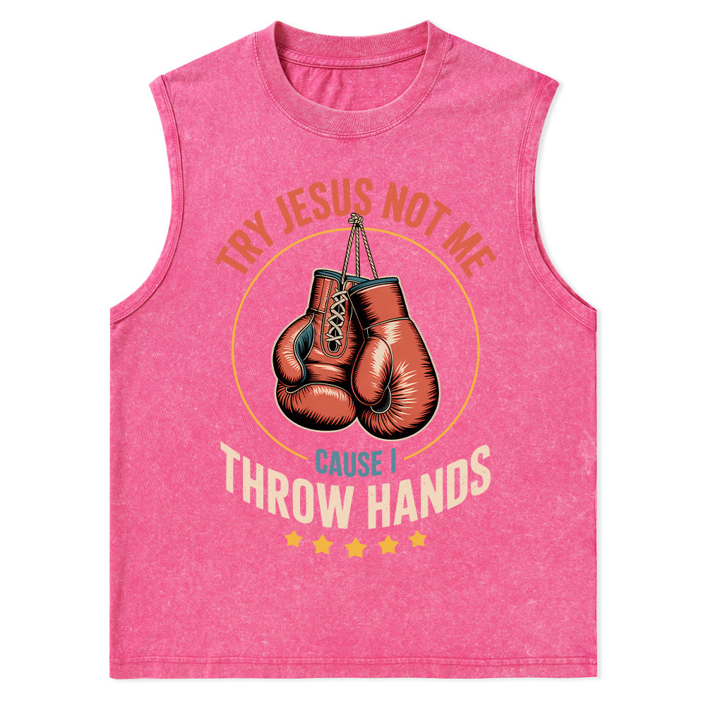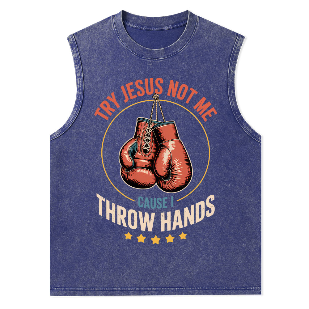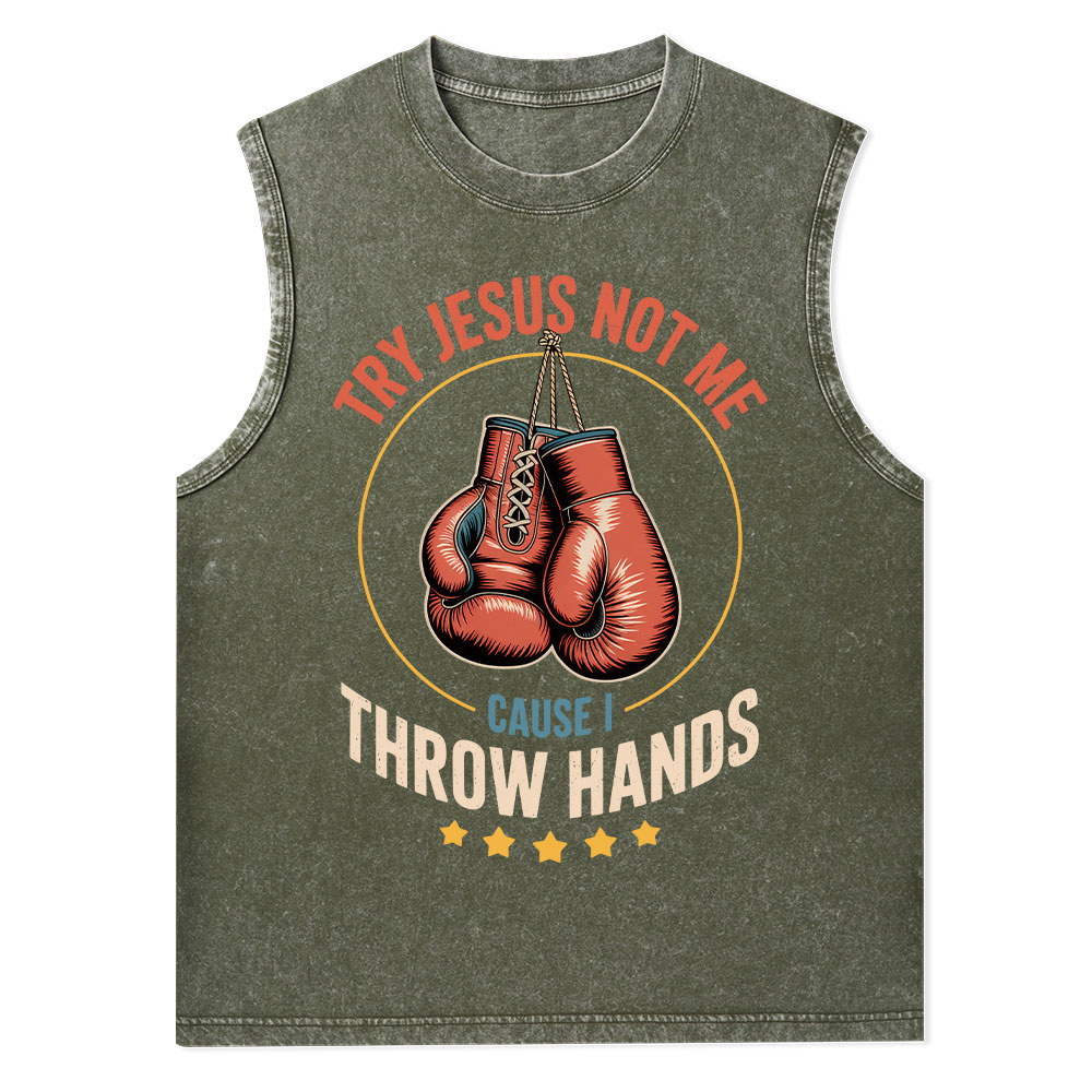 Try Jesus Not Me Cause I Throw Hands Christian Washed Tank Top