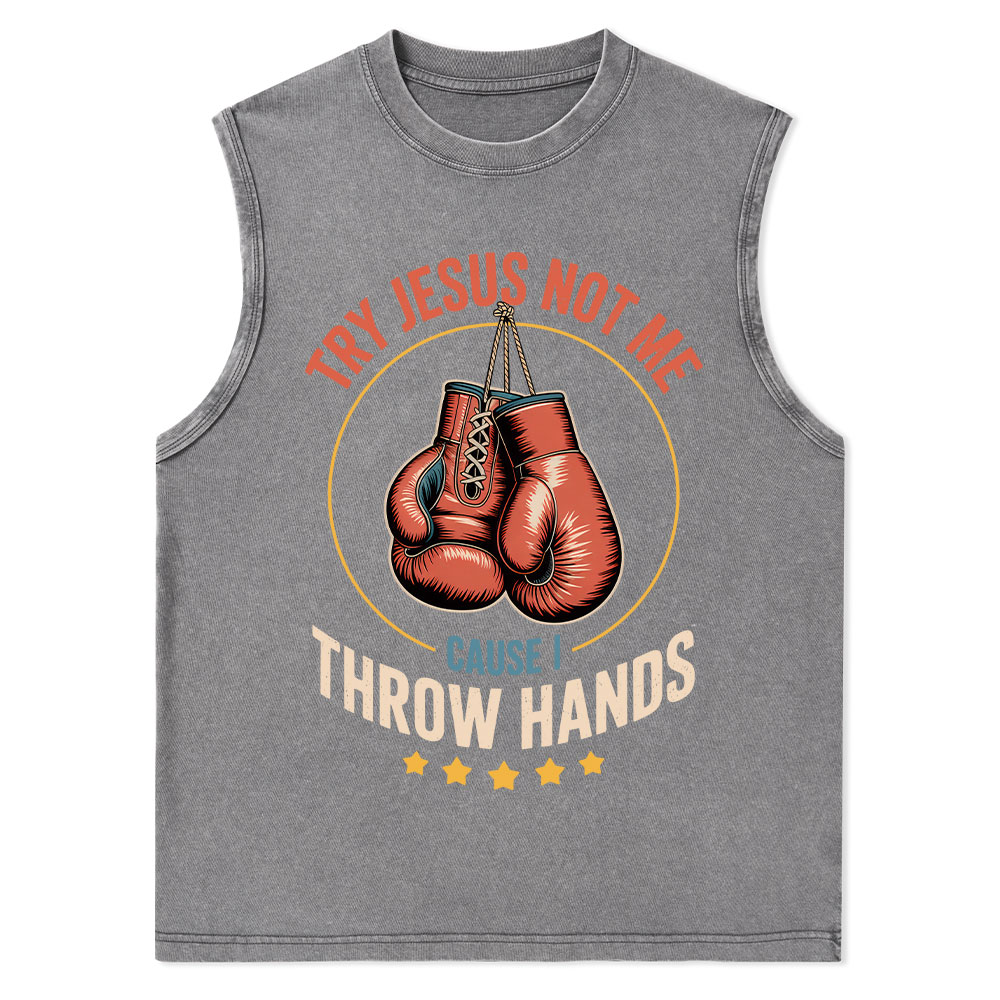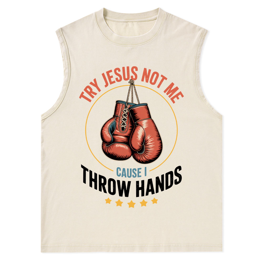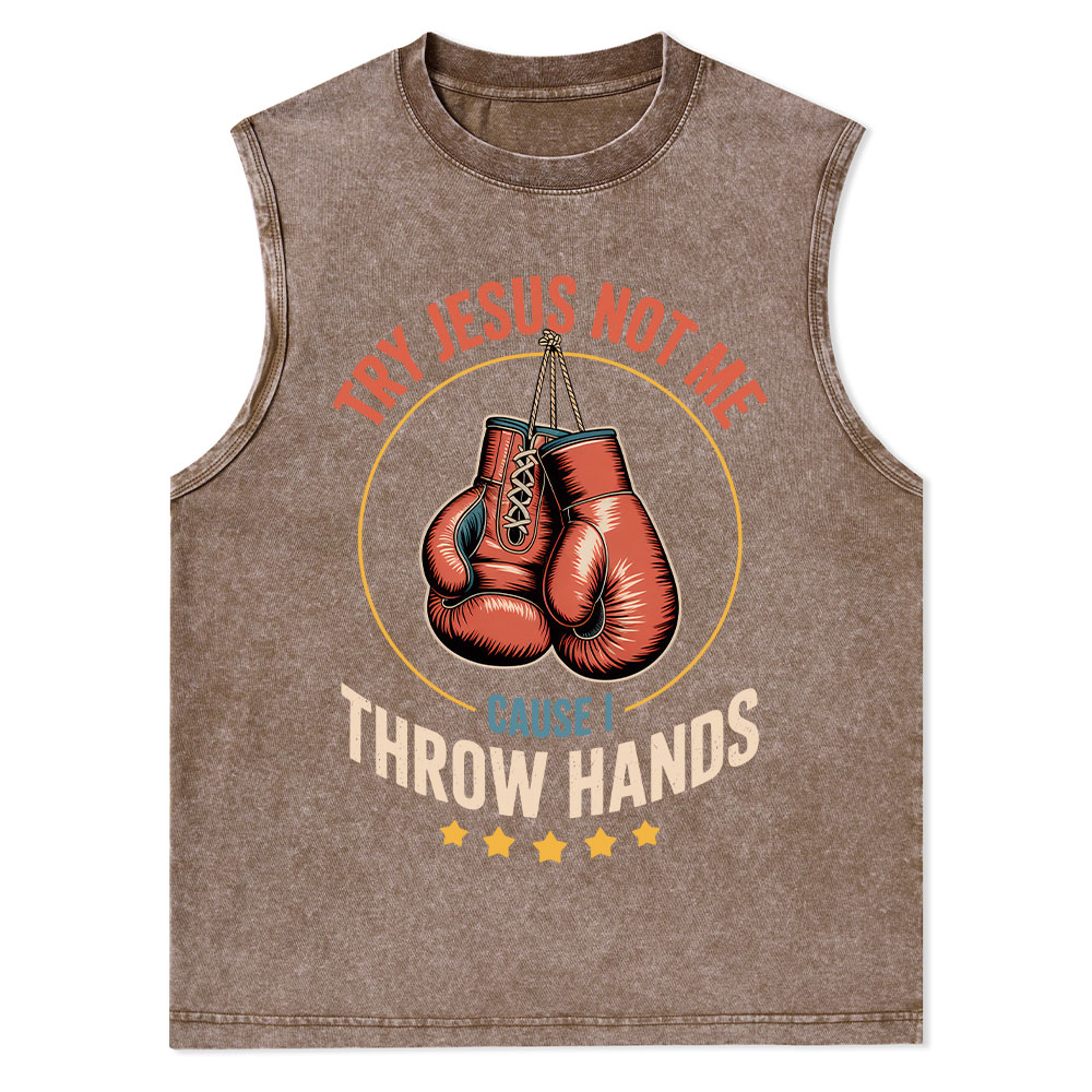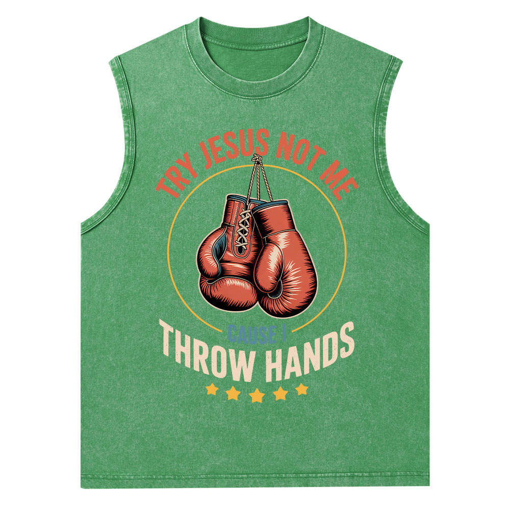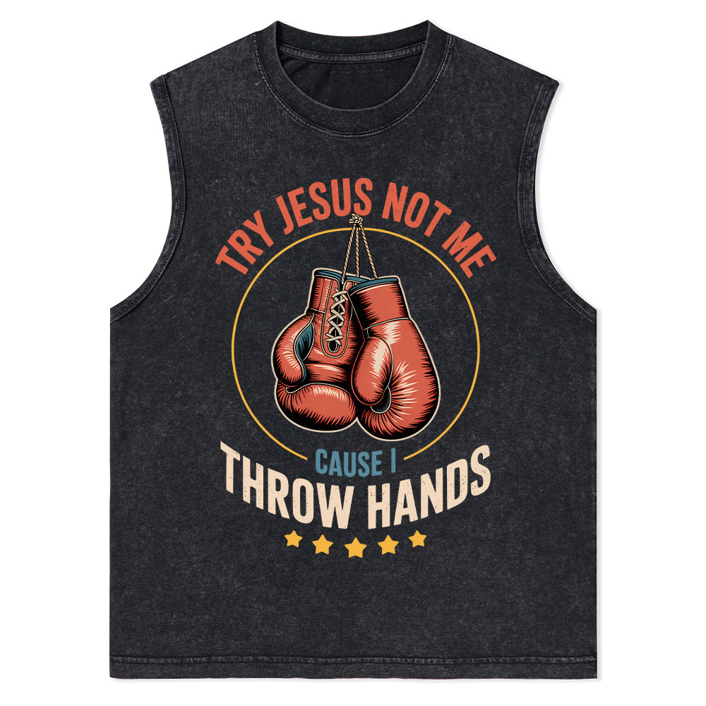 Try Jesus Not Me Cause I Throw Hands Christian Washed Tank Top