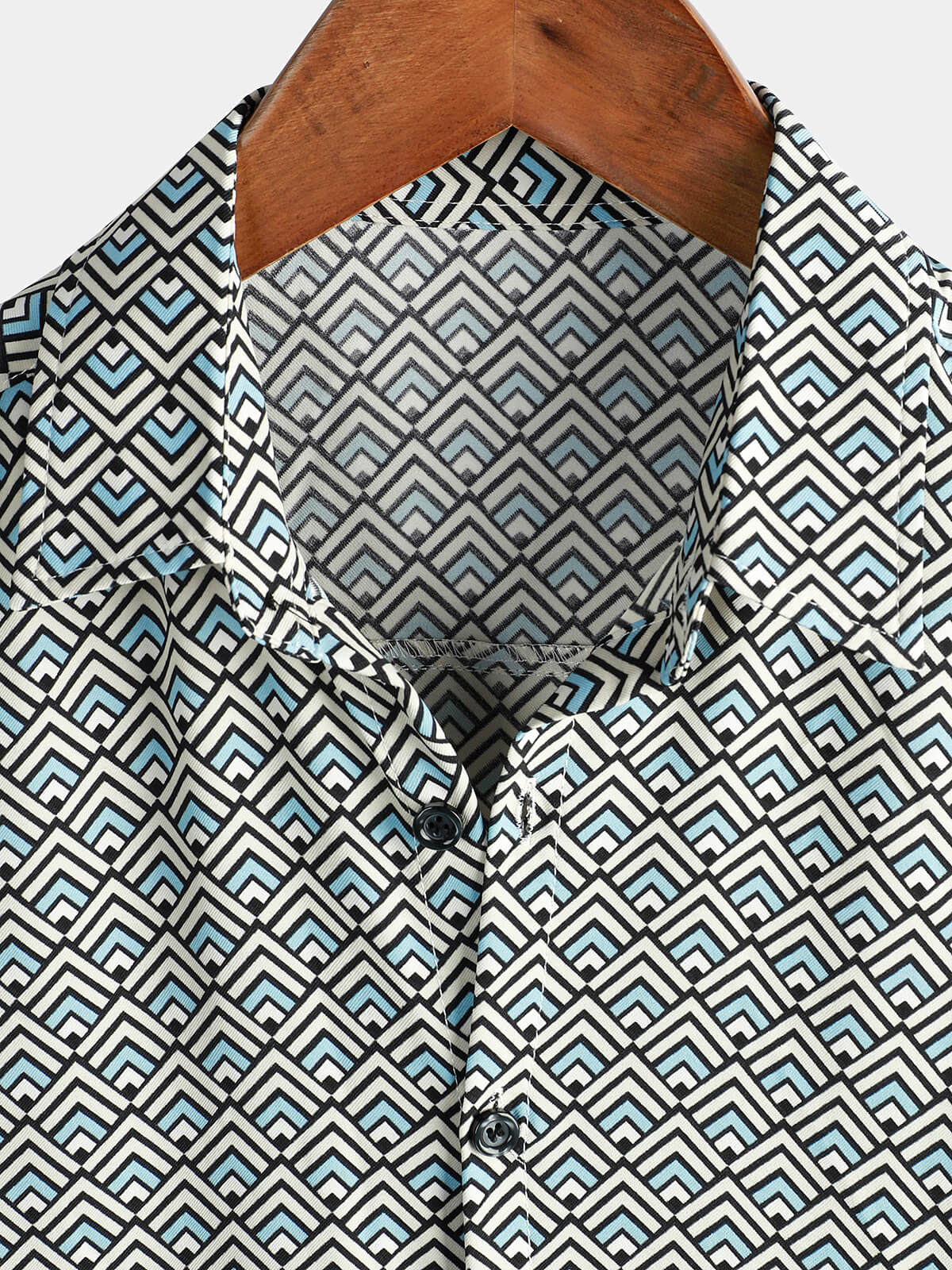 Men's Casual Vintage Geometric Button Up Holiday Summer Retro Short Sleeve Shirt
