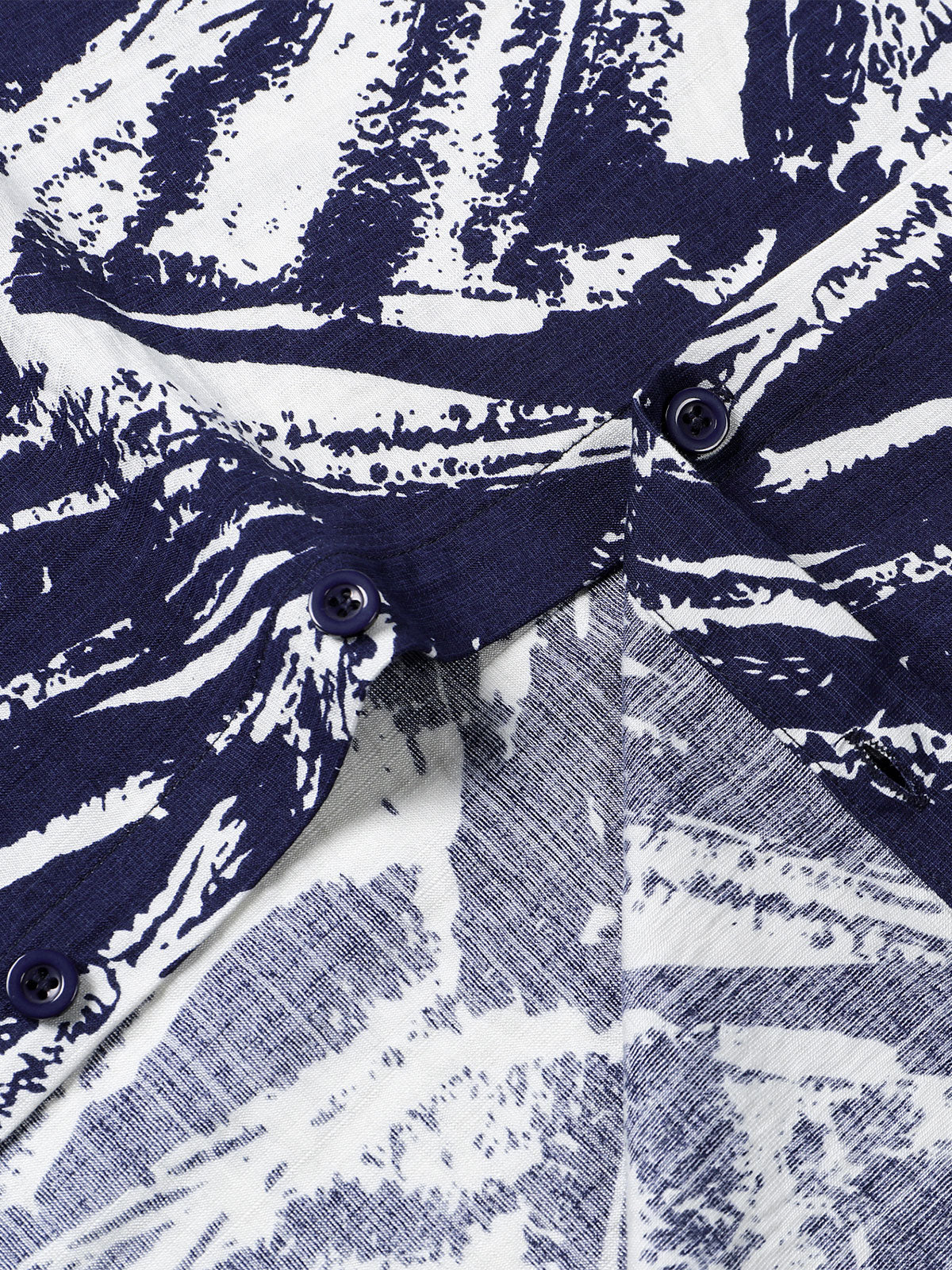 Men's Navy Blue Abstract Geometric Print Short Sleeve Shirt