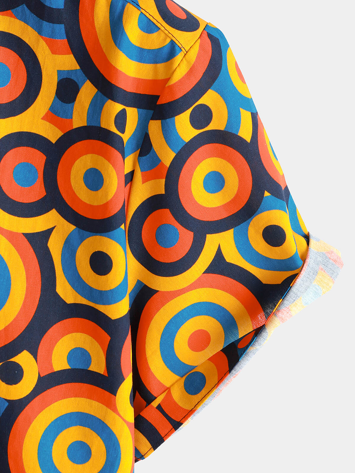 Men's Orange 70s Retro Button Up Vintage Geometric Circle Shirt