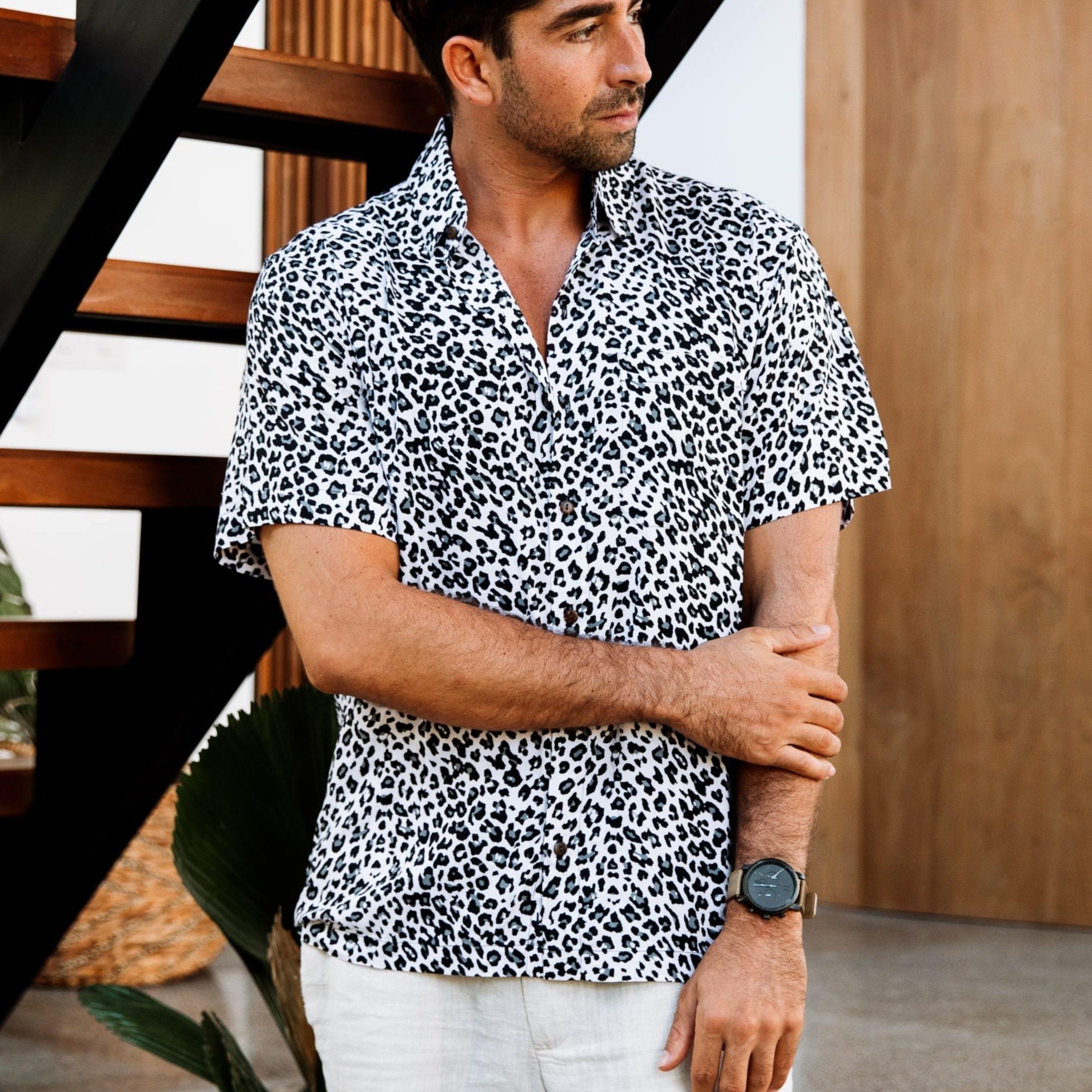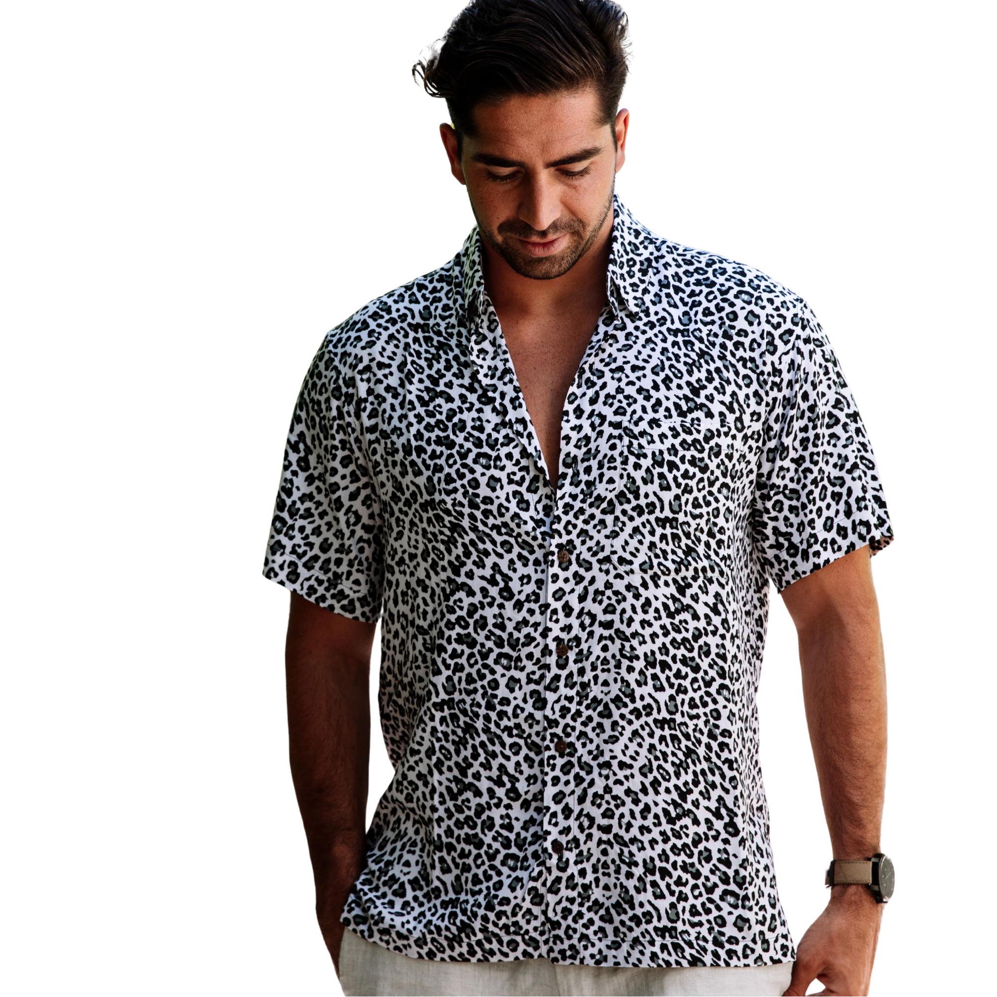 Ideal for living your best 9 island lives. Although this sleek and chic white leopard print shirt likes to hide out in purradise, it’s always poised and ready for whatever adventures you want to take it on.
