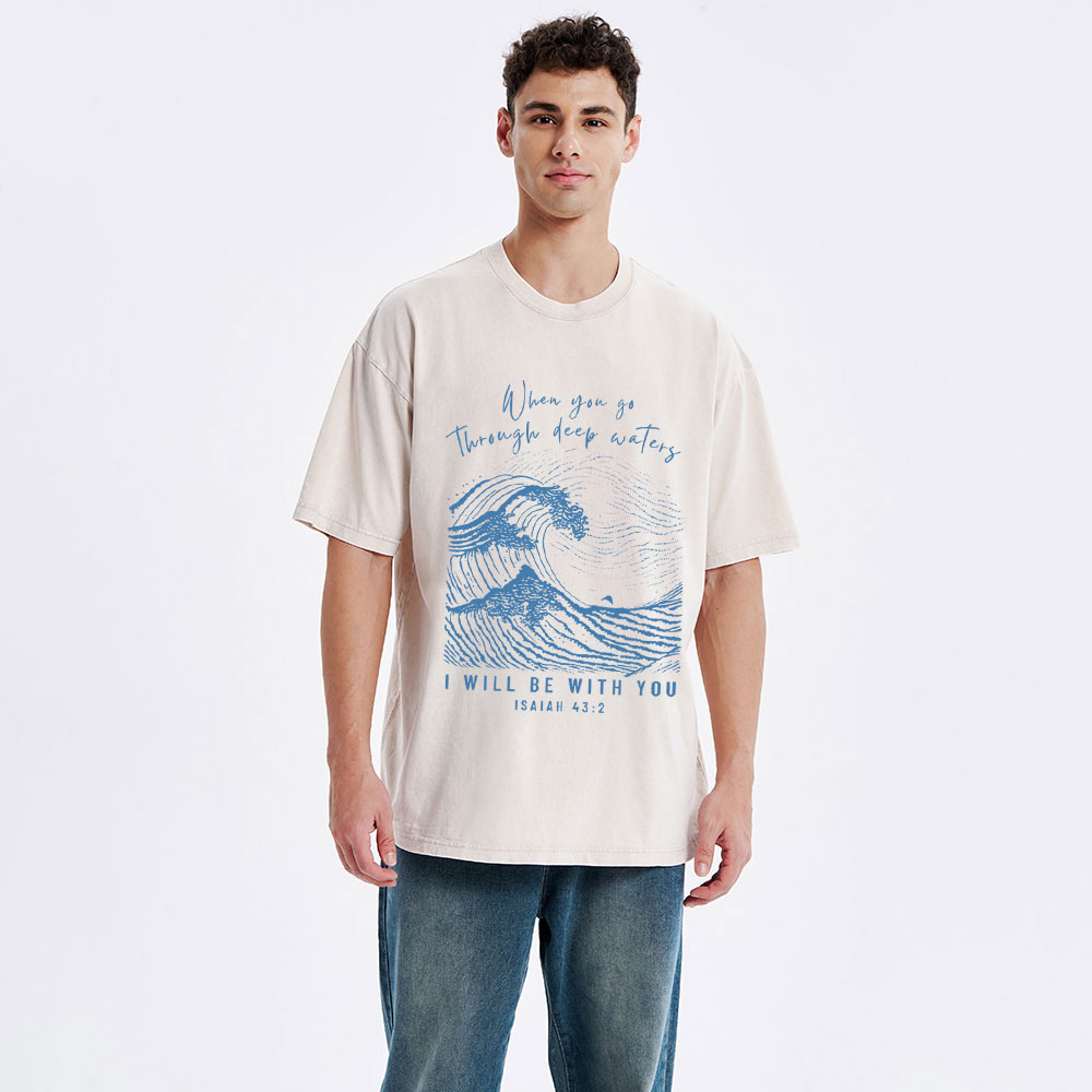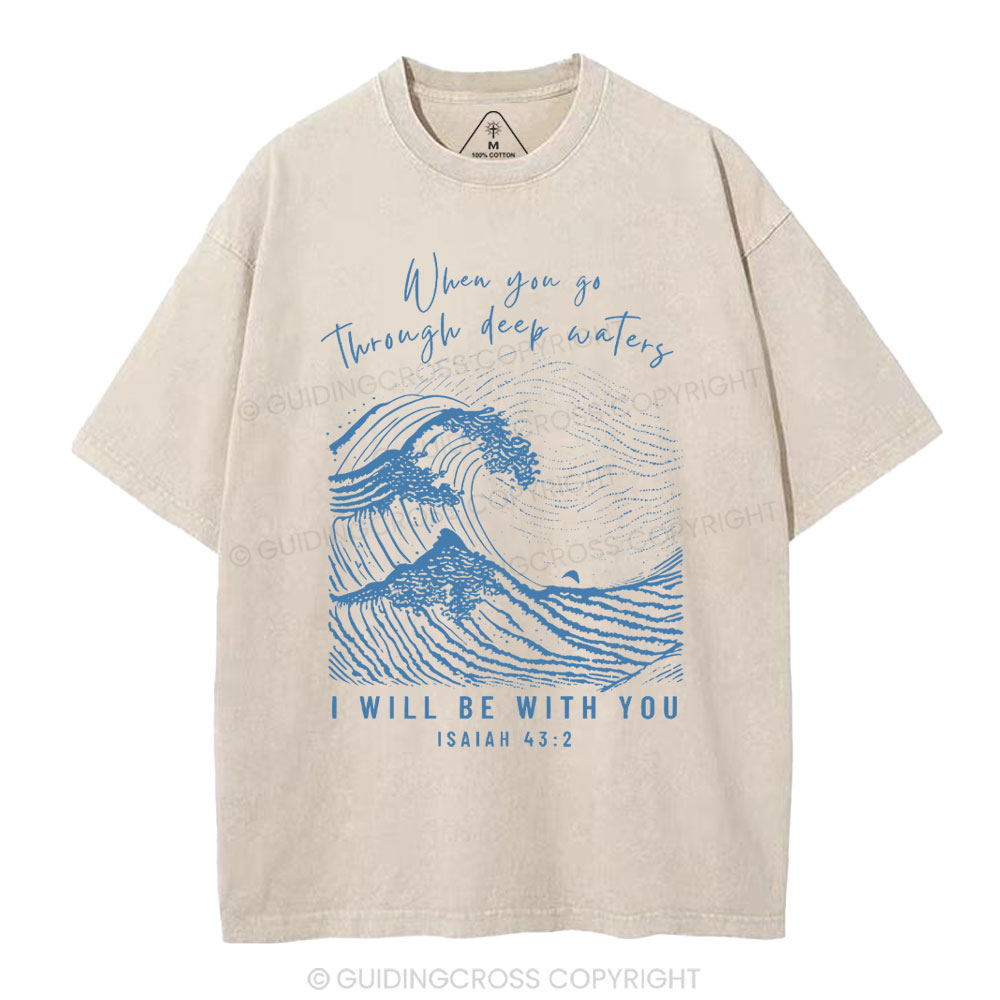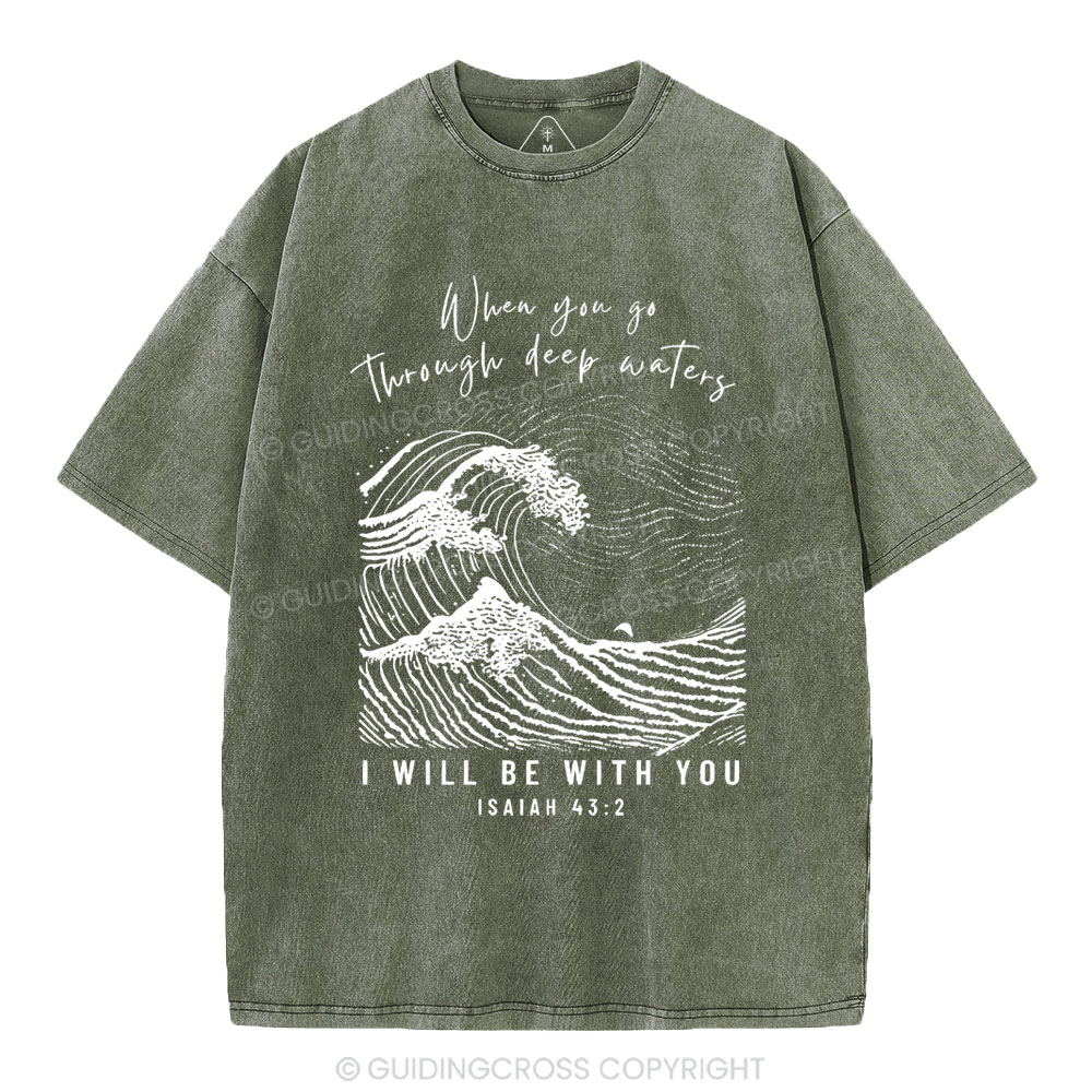 When You Go Through Deep Waters Christian Washed T-Shirt