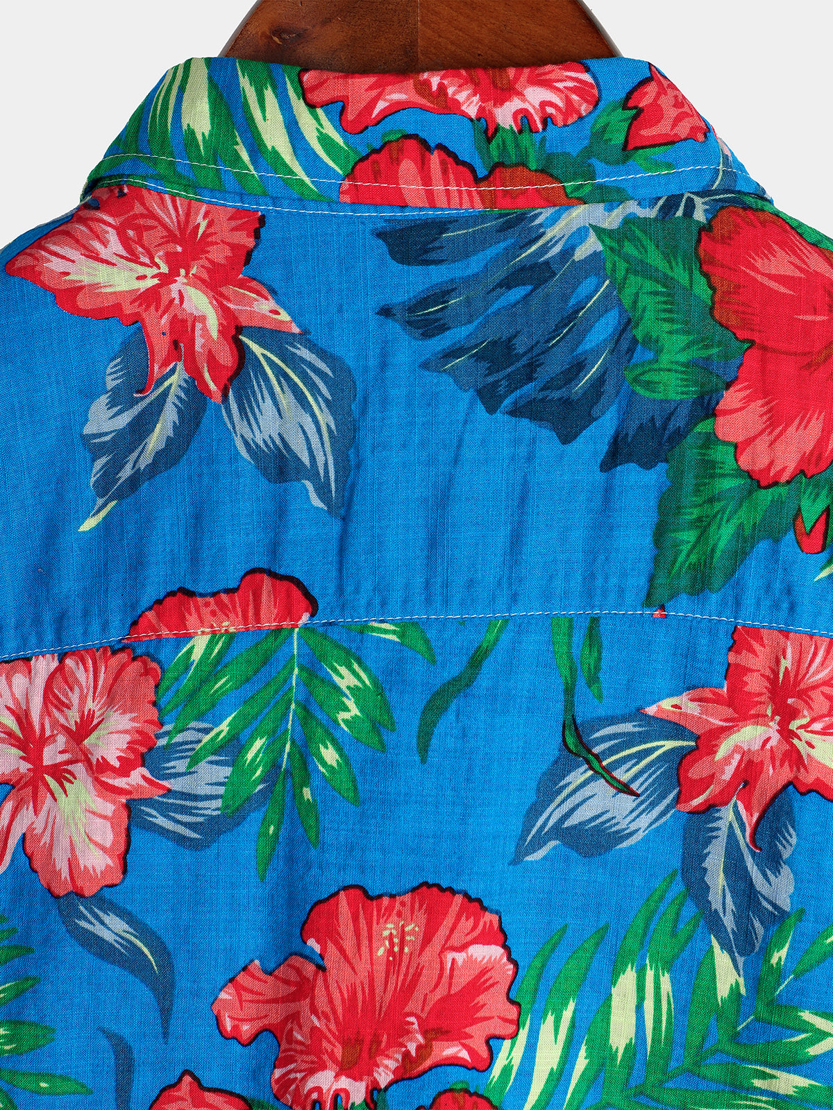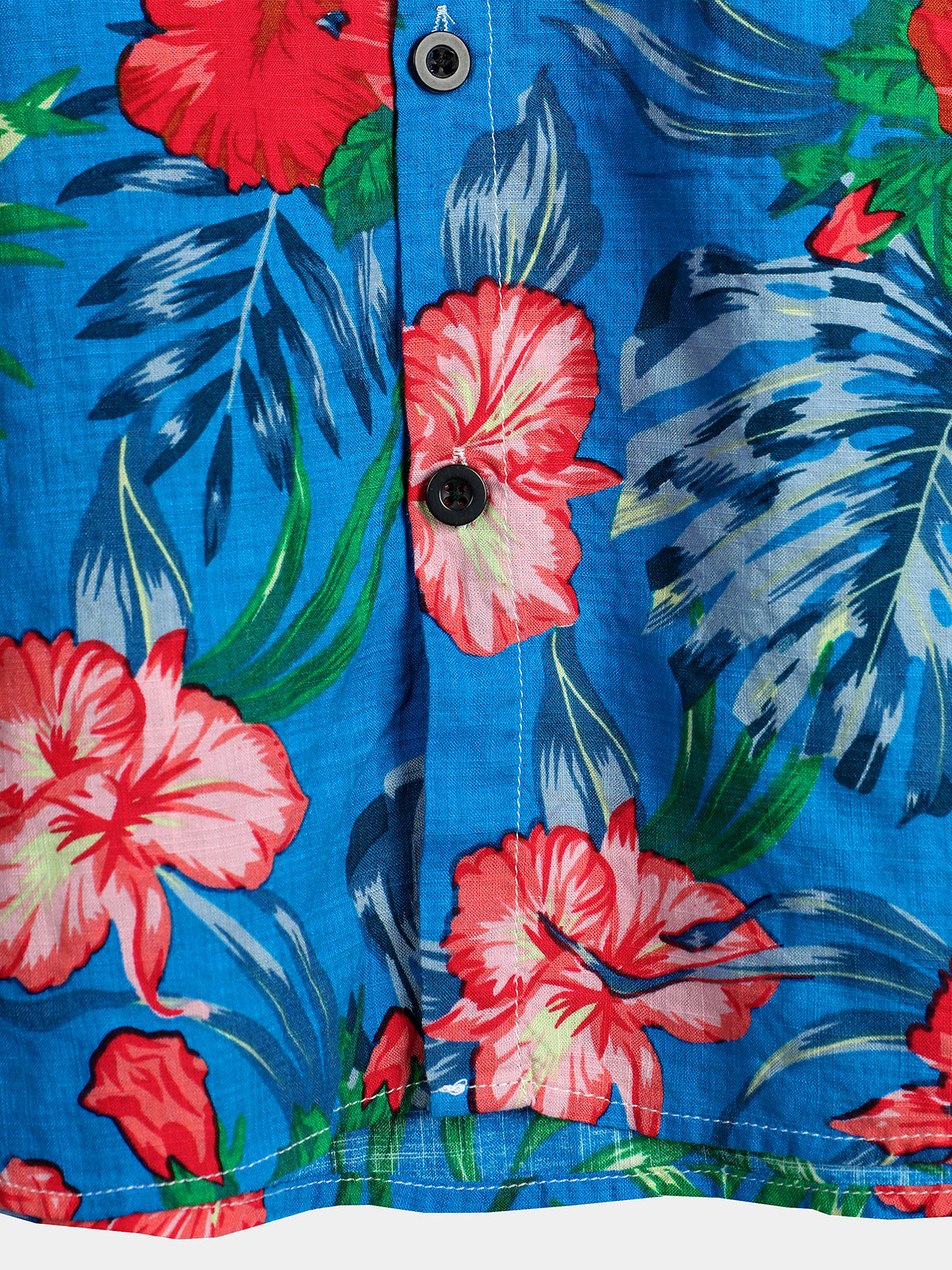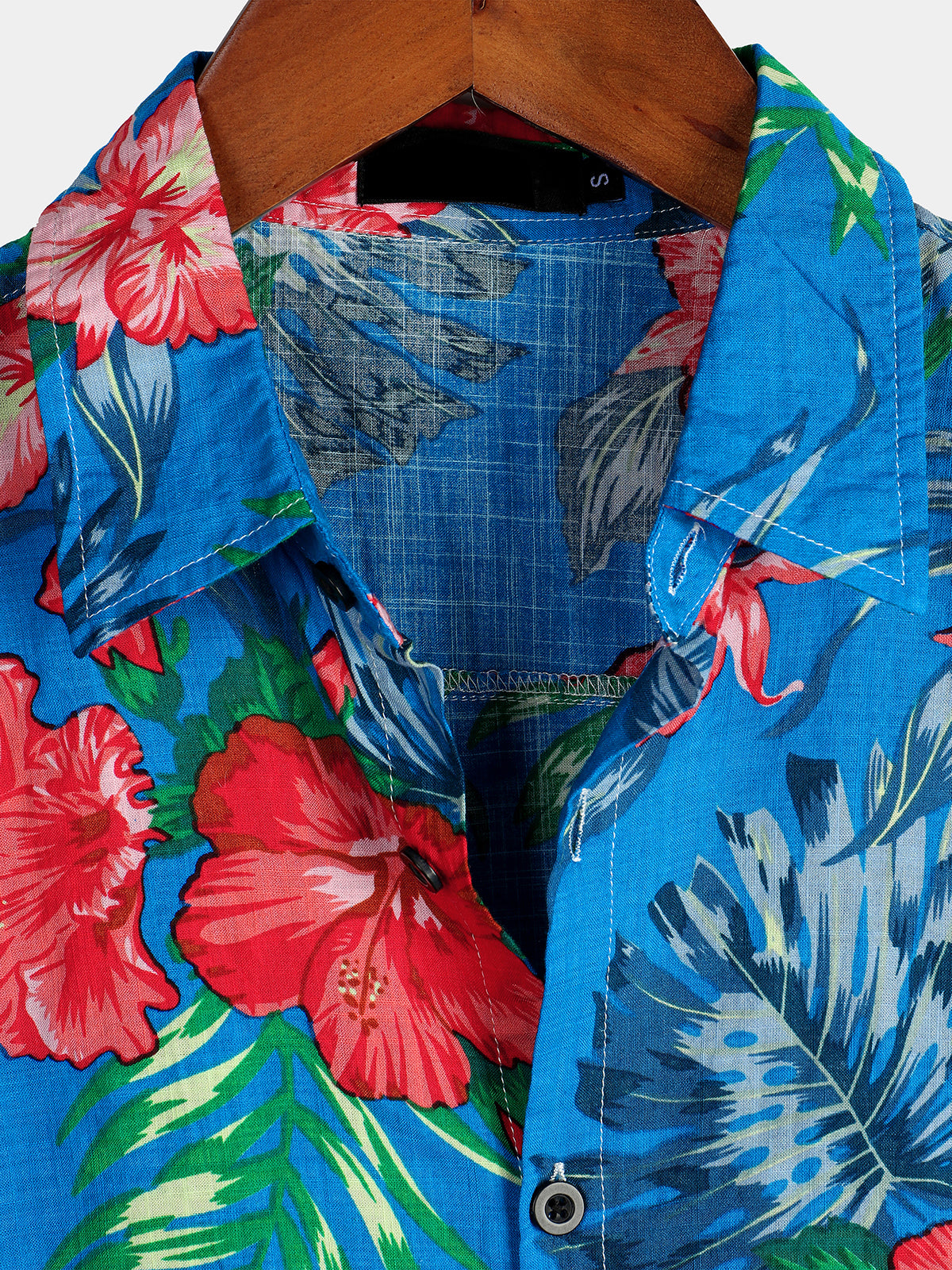 Men's Blue Flower Tropical Hawaii Cotton Short Sleeve Shirt