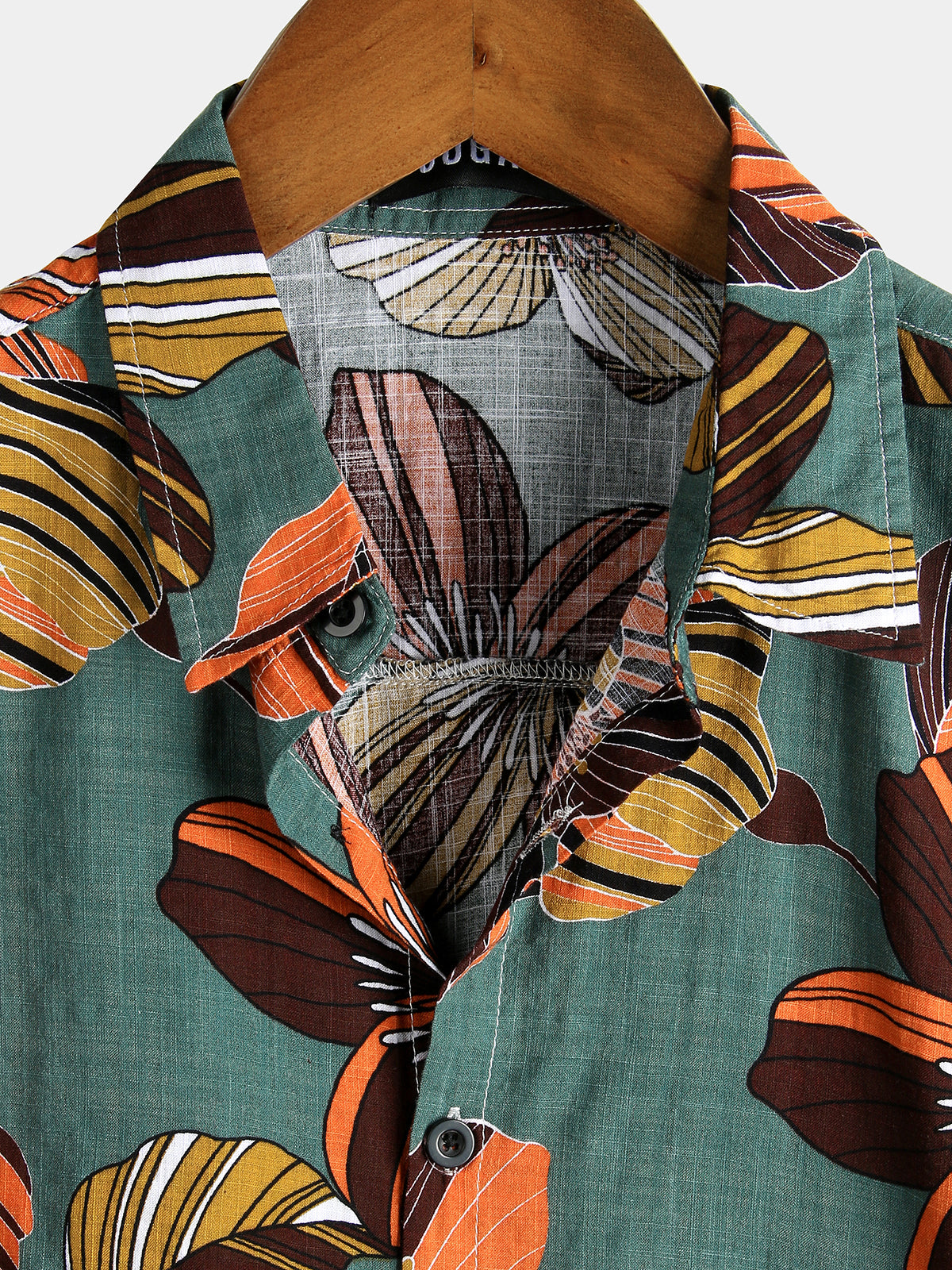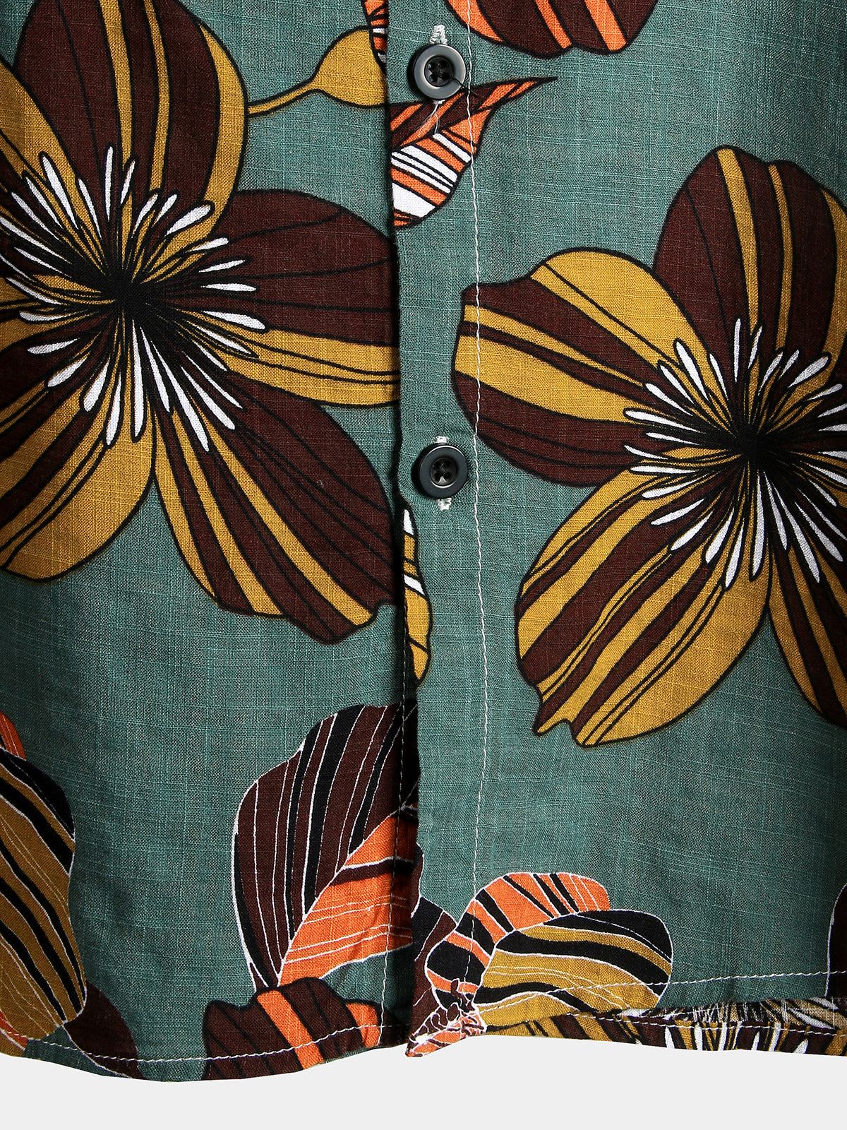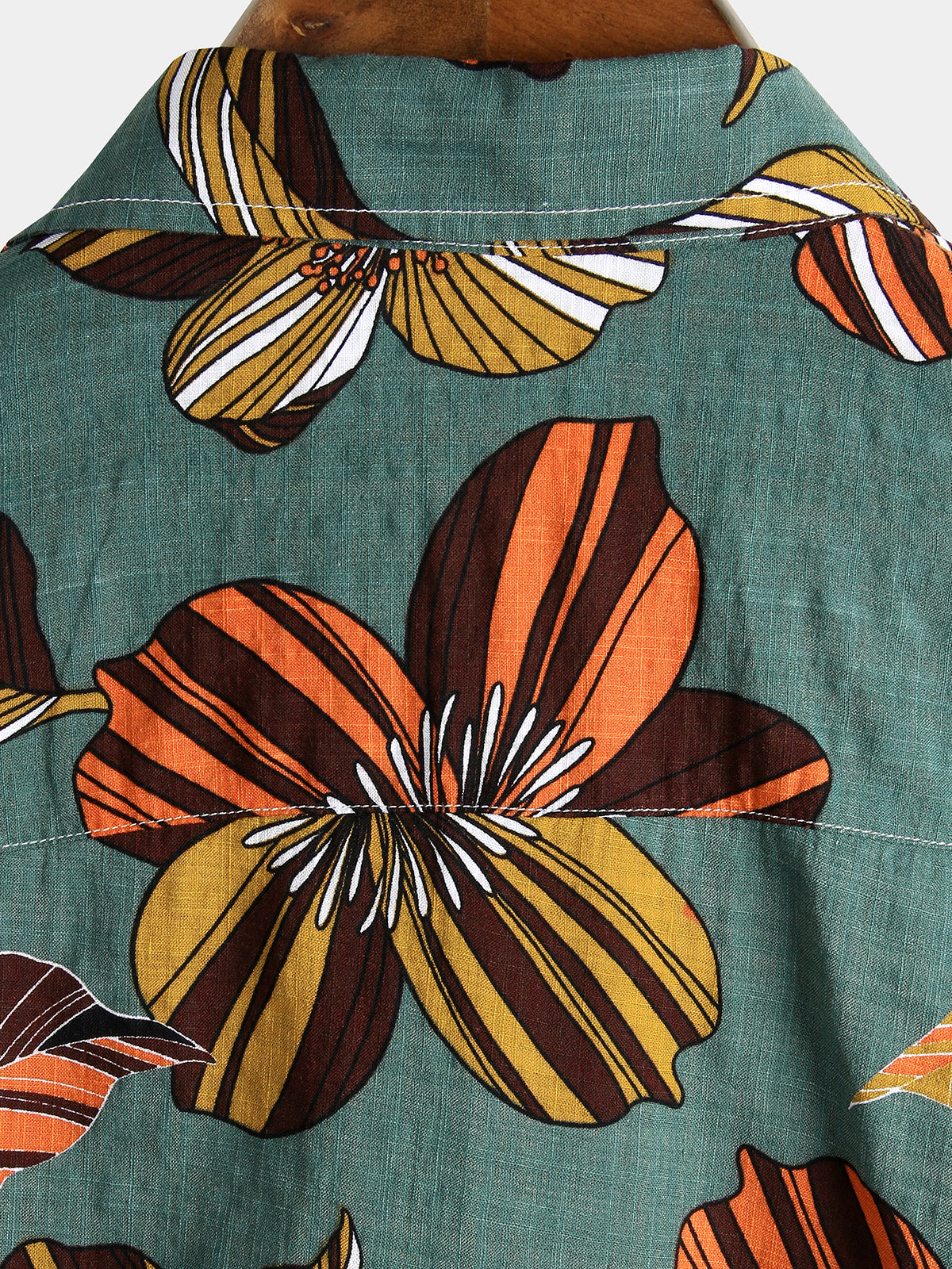Men's Flower Tropical Hawaii Cotton Short Sleeve Shirt