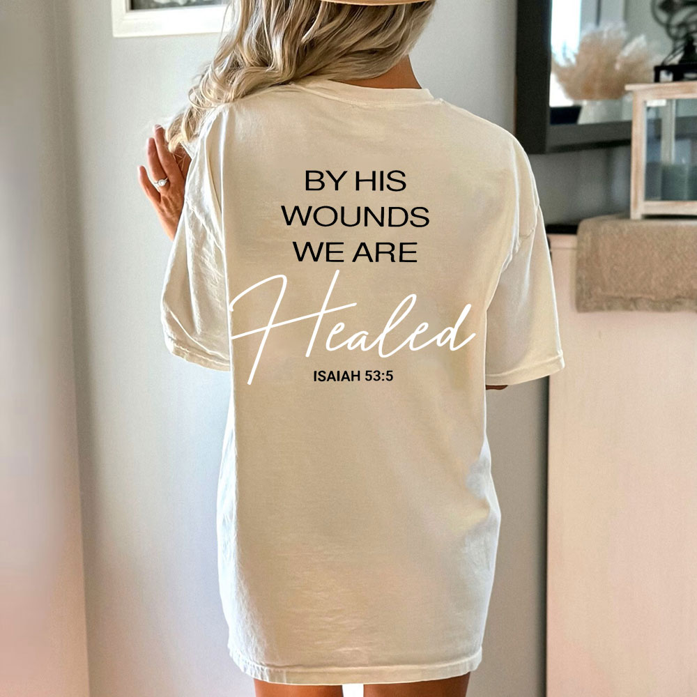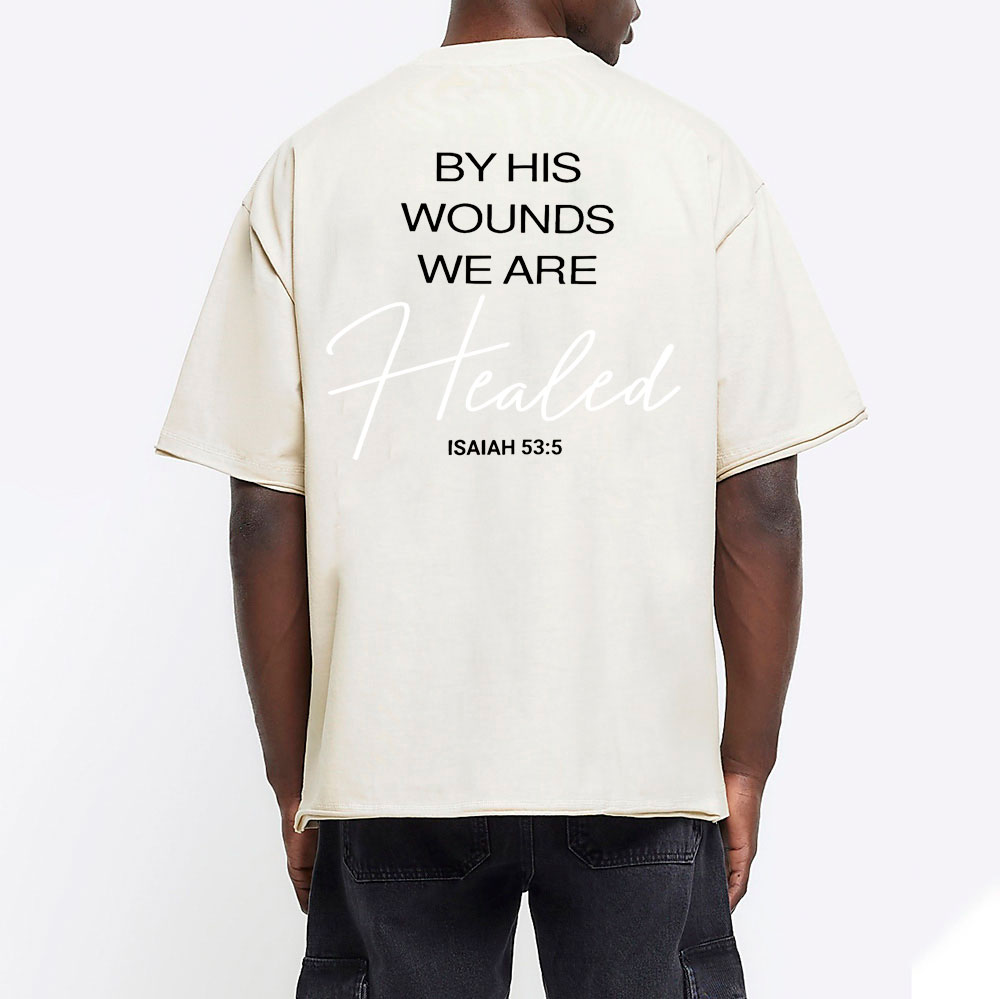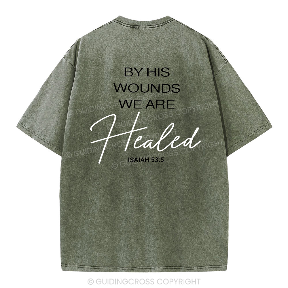 By His Wounds Christian Washed T-Shirt