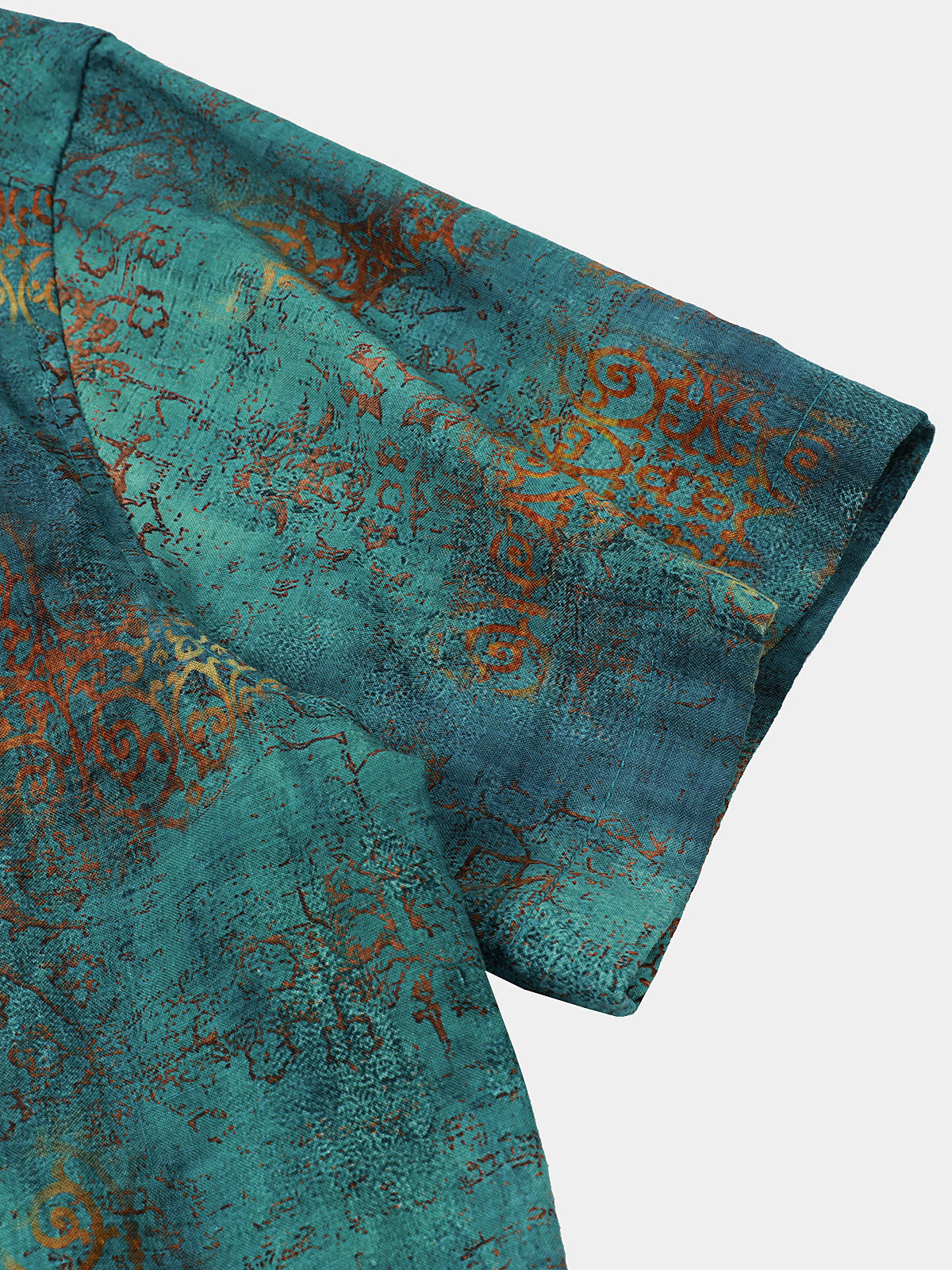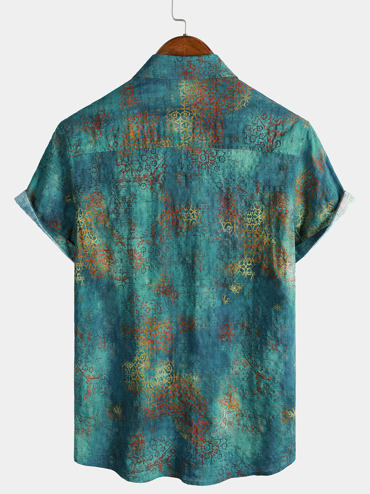Men's Blue Beach Vacation Breathable Tropical Short Sleeve Hawaiian Shirt