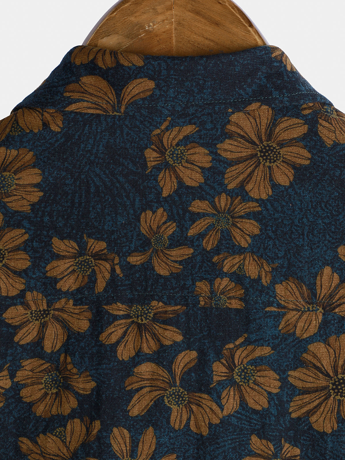 Men's Floral Print Vintage Flower Breathable Holiday Short Sleeve Shirt