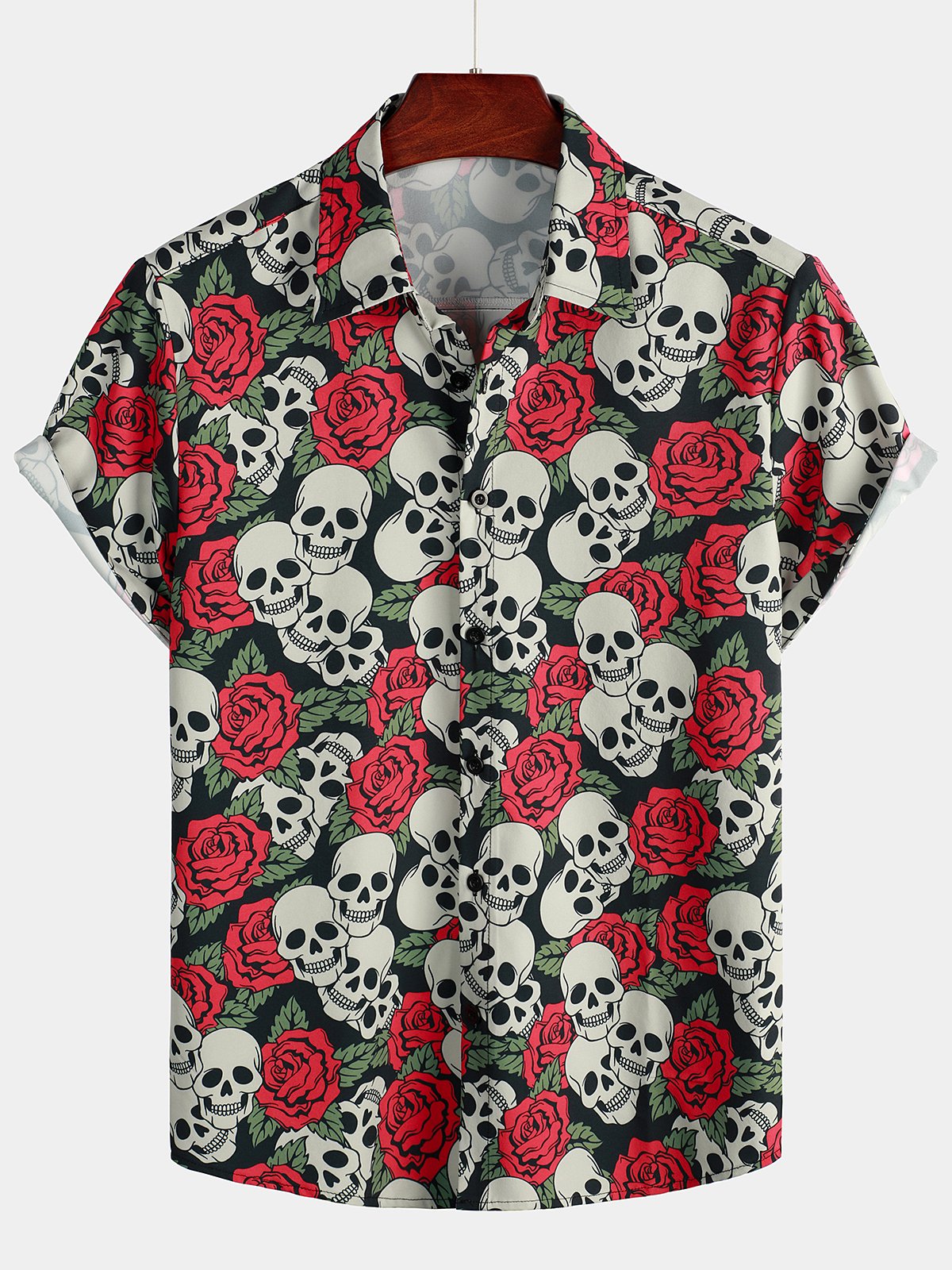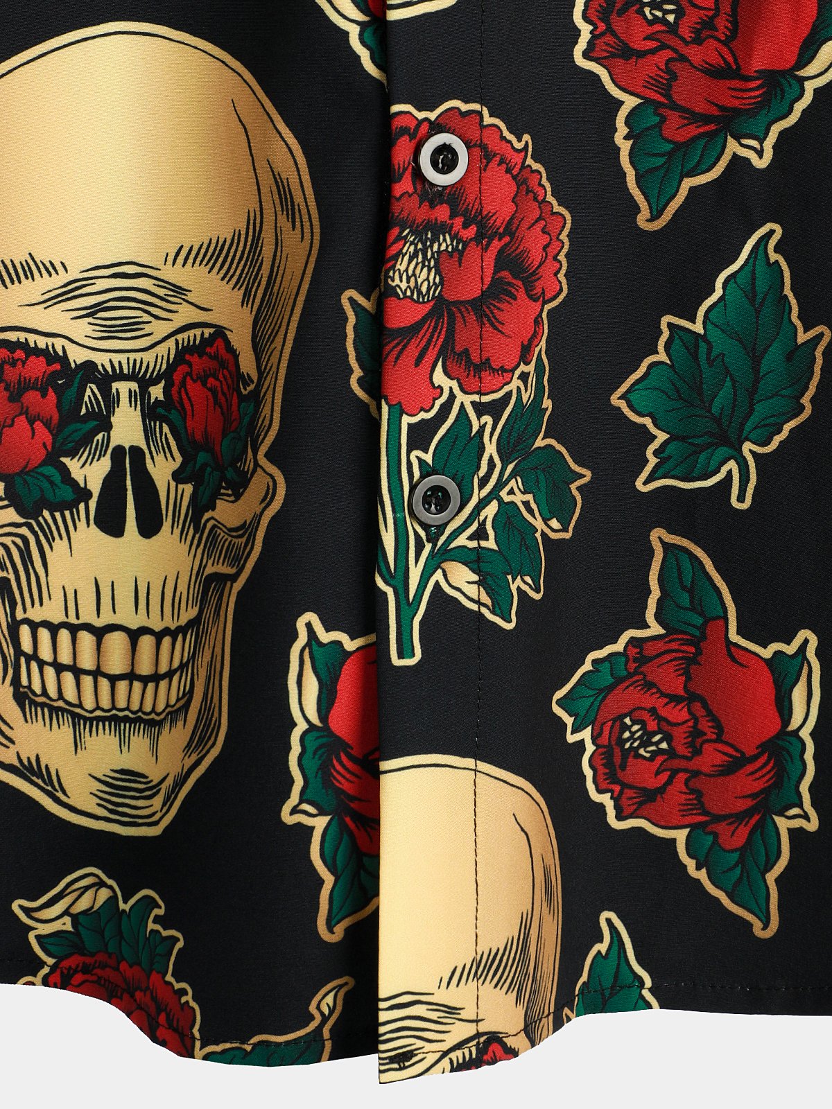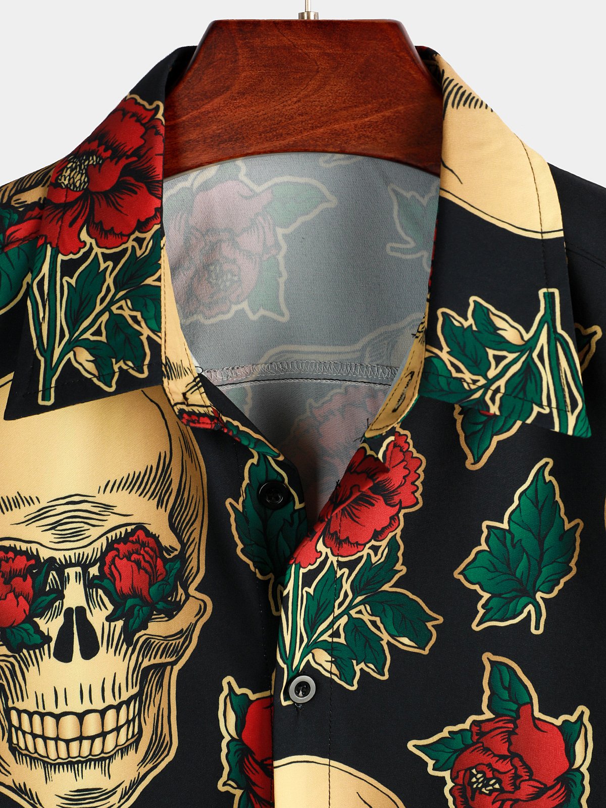 Men's Gold Skull Rose Print Short Sleeve Shirt