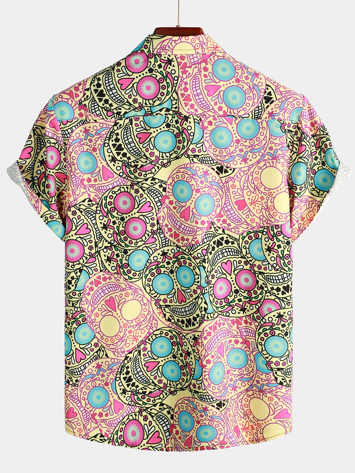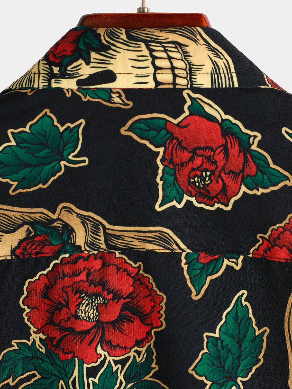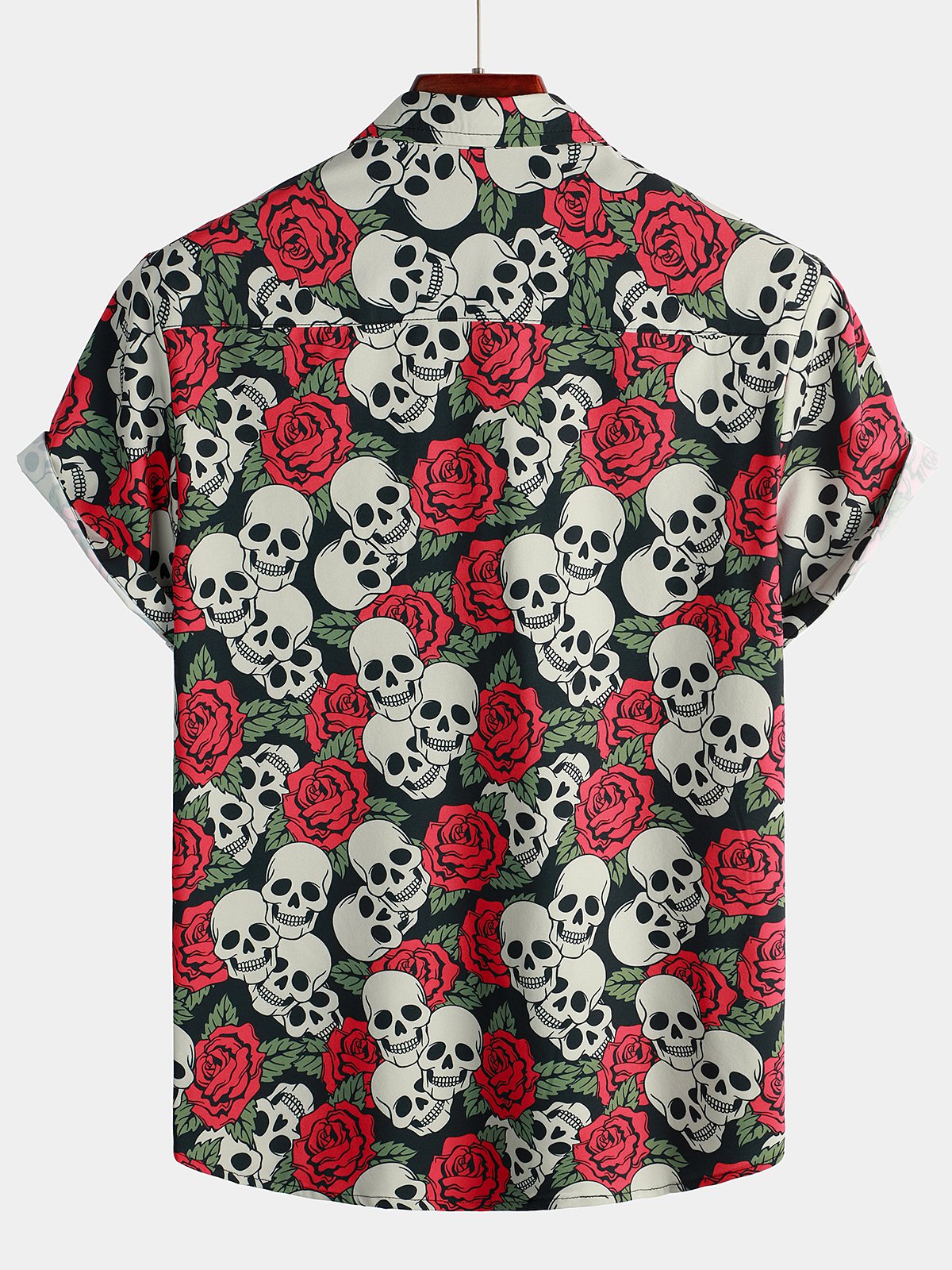 Men's Gold Skull Rose Print Short Sleeve Shirt
