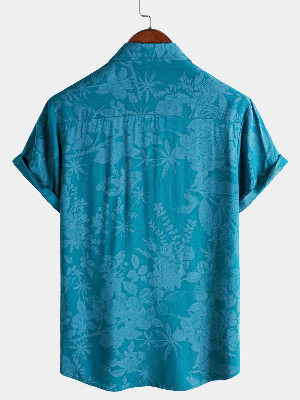 Men's Hawaiian Blue Floral Summer Beach Short Sleeve Shirt