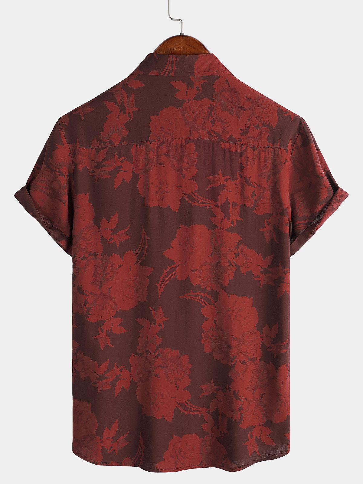Men's Hawaiian Red Floral Summer Beach Short Sleeve Shirt