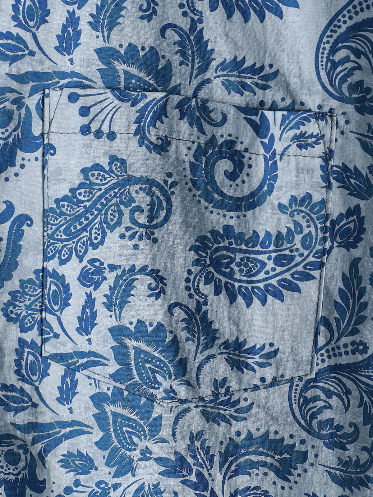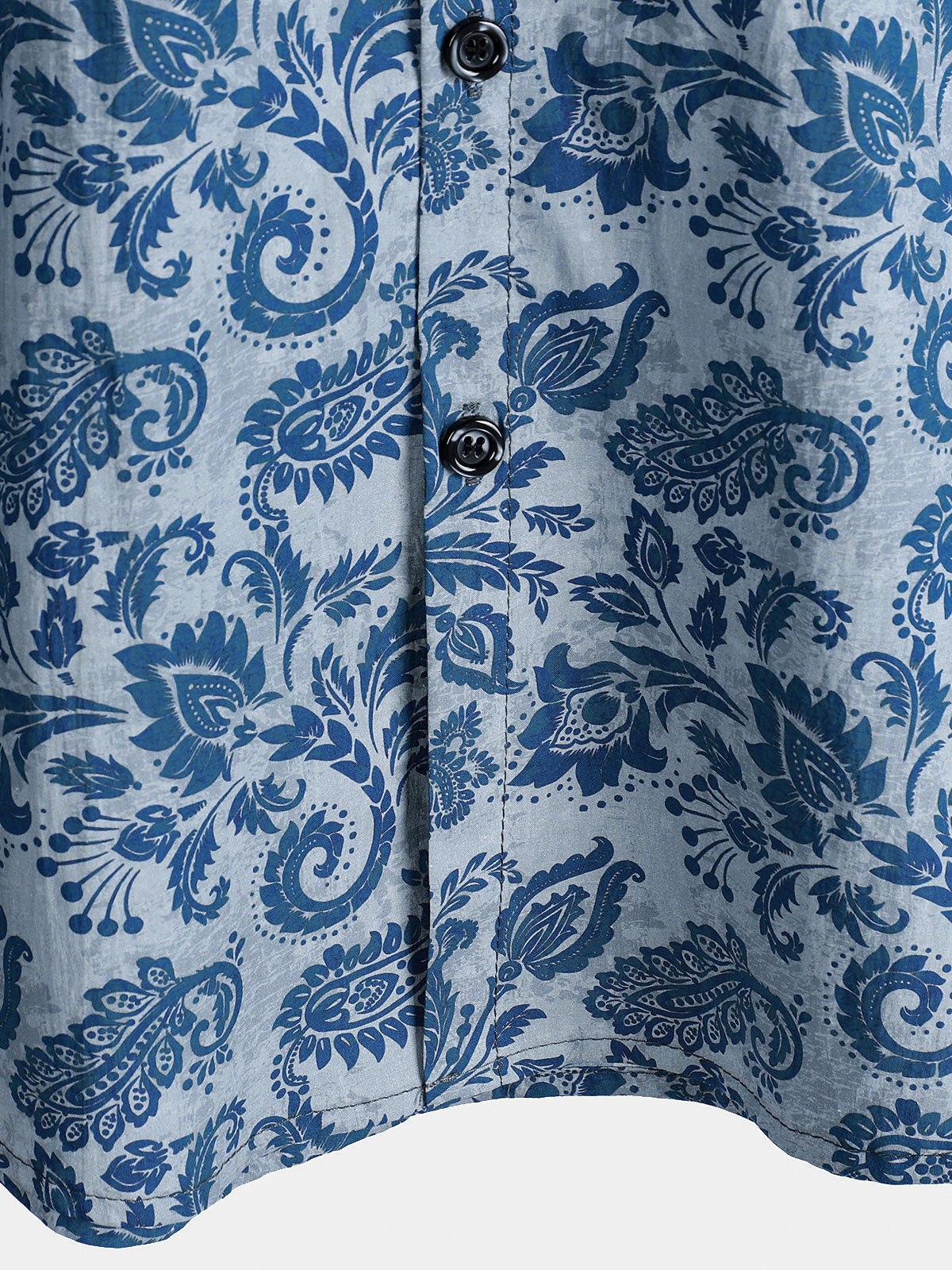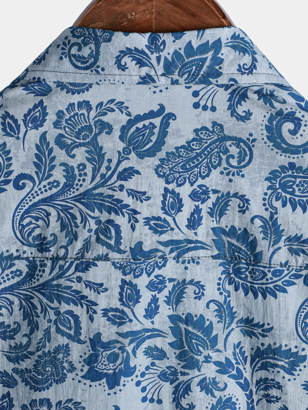 Men's Paisley Floral Blue Casual Short Sleeve Shirt