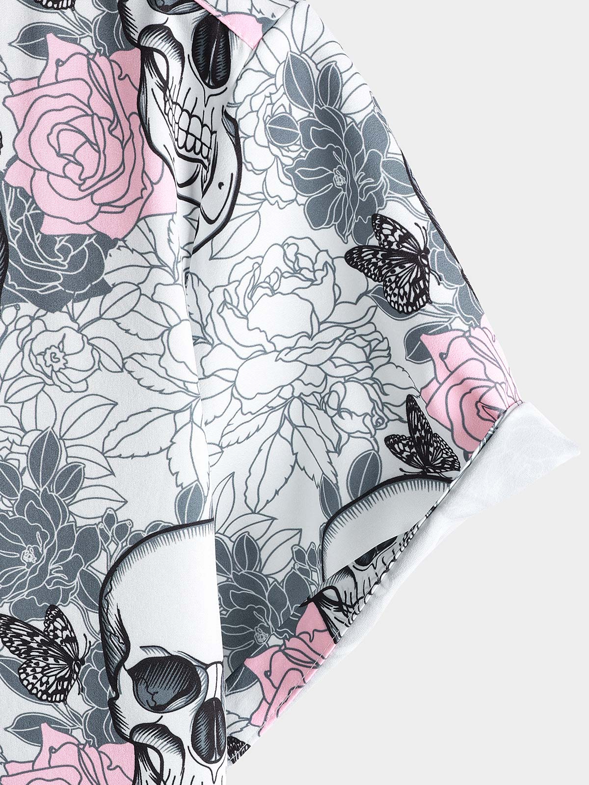 Men's Pink Flower Cool Skull Graphic Button Up Short Sleeve Punk Rock Art Shirt