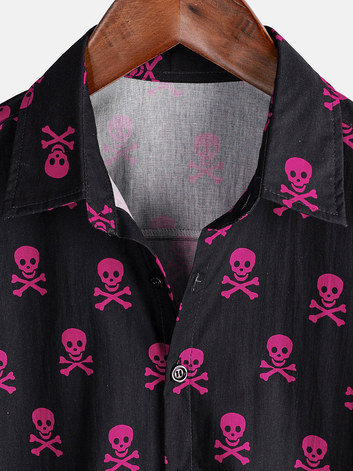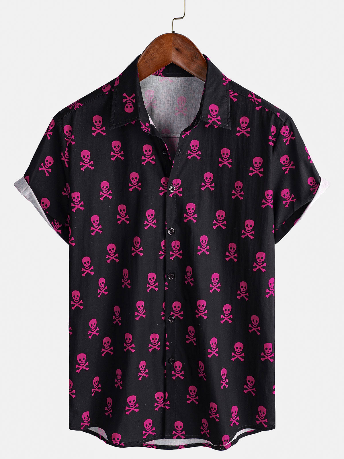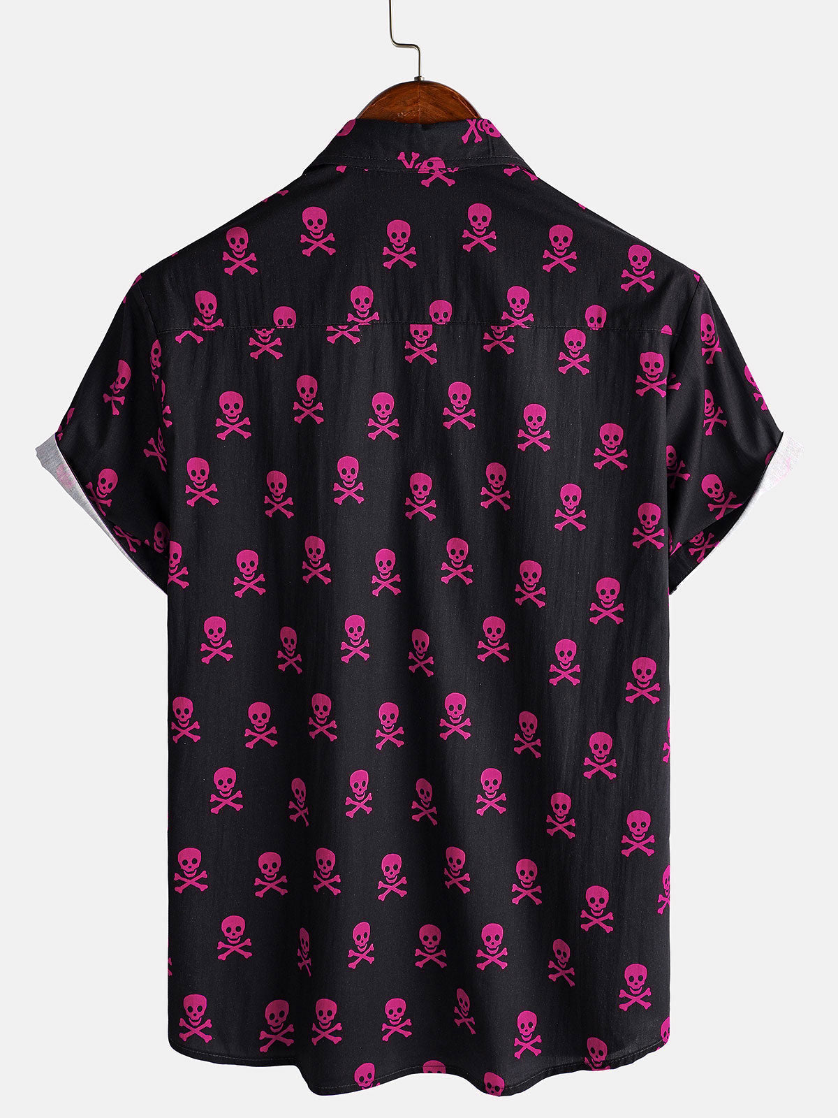 Men's Pink Skull Punk Rock Holiday Cotton Breathable Cool Summer Short Sleeve Shirt