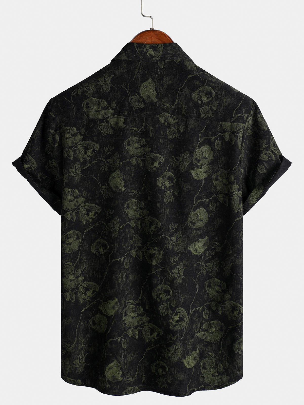 Men's Retro Floral Print Holiday Breathable Hawaiian Short Sleeve Shirt