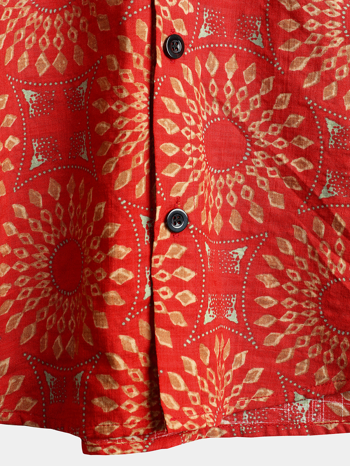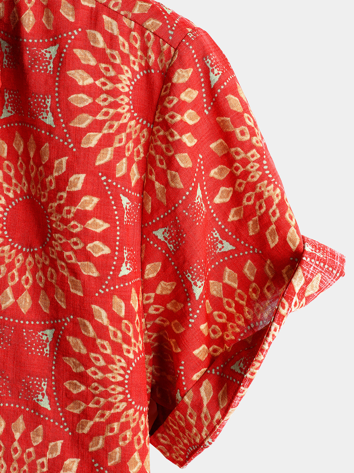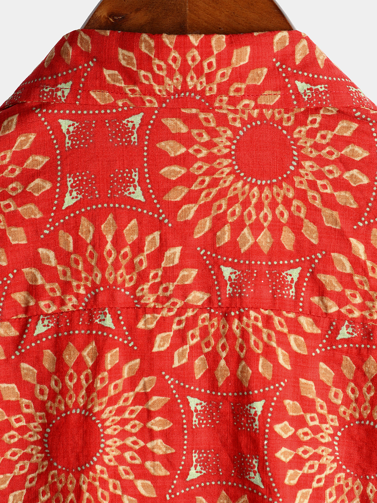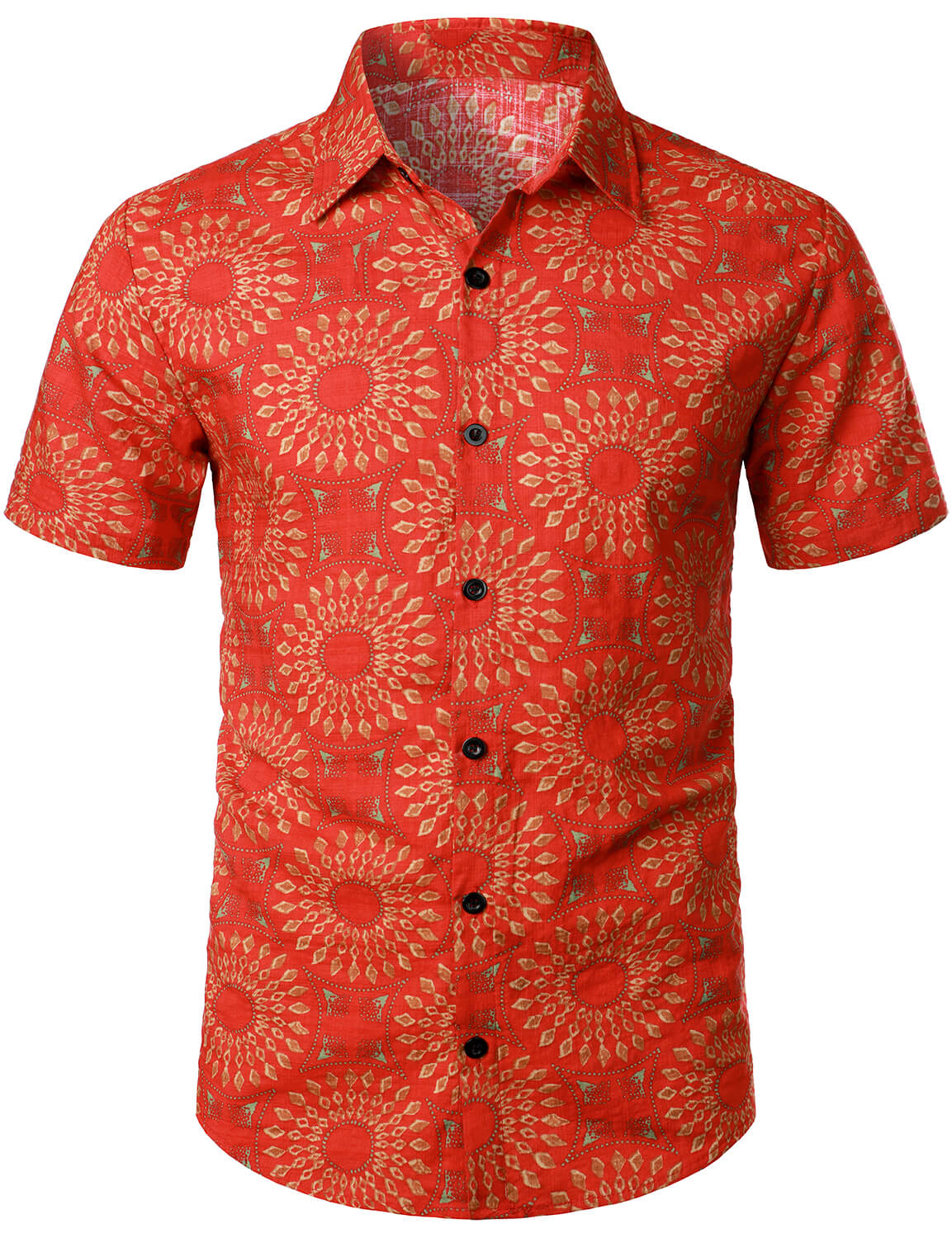 Men's Vintage Short Sleeve Cotton Boho 70s Leisure Button Up Hawaiian Shirt