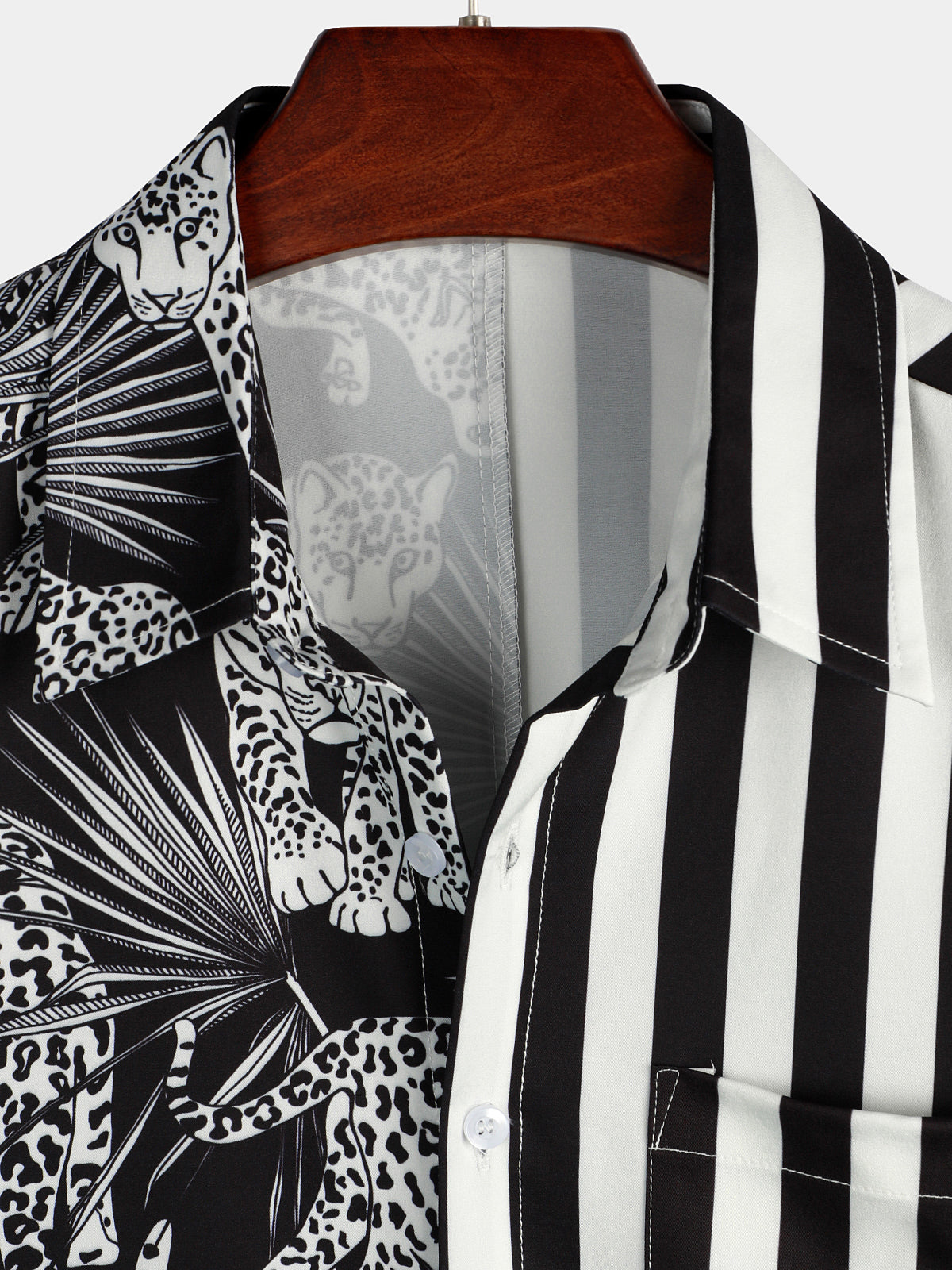 Men's Leopard & Striped Pocket Holiday Casual Shirt