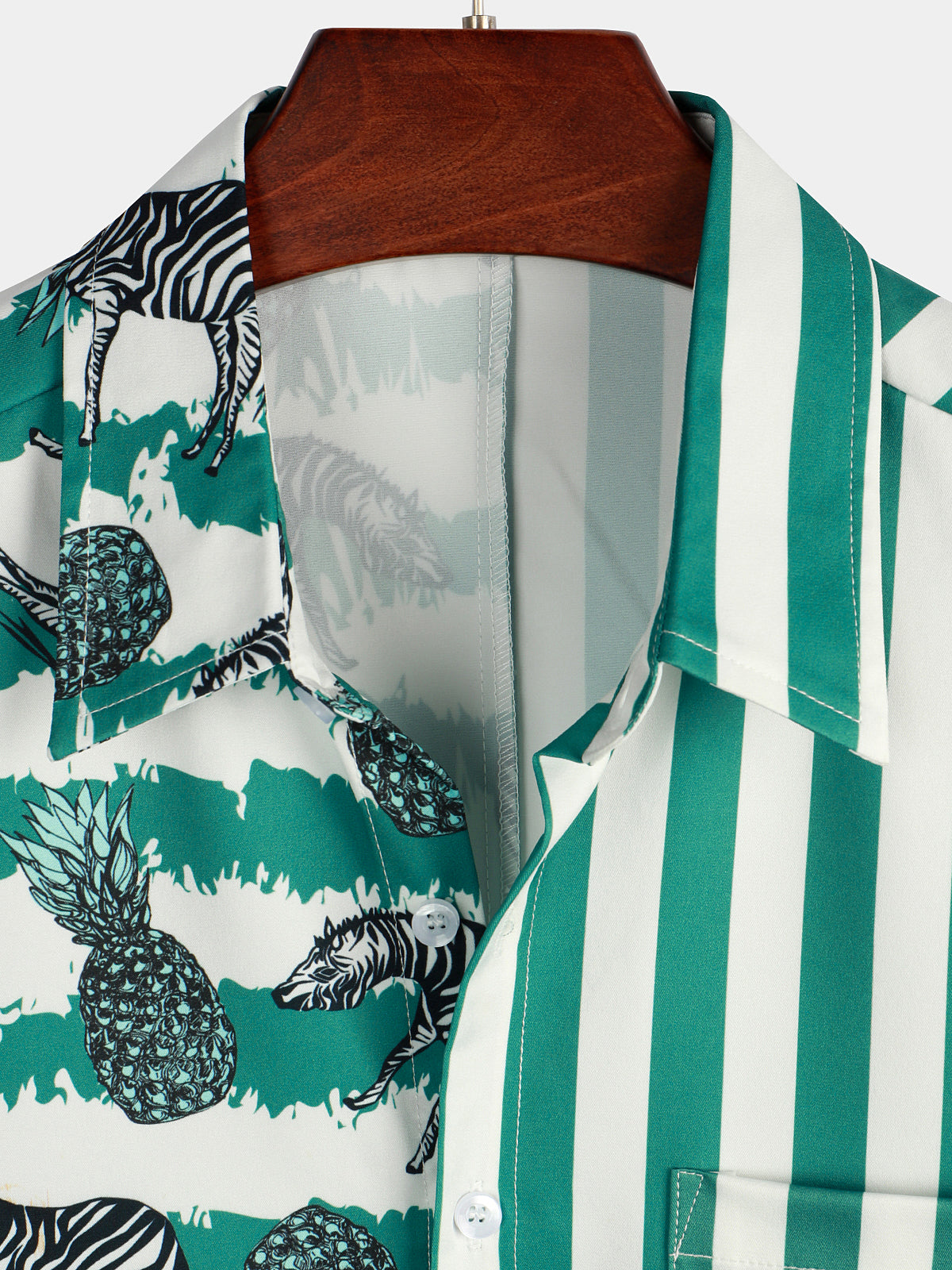 Men's Zebra & Striped Pocket Holiday Casual Shirt