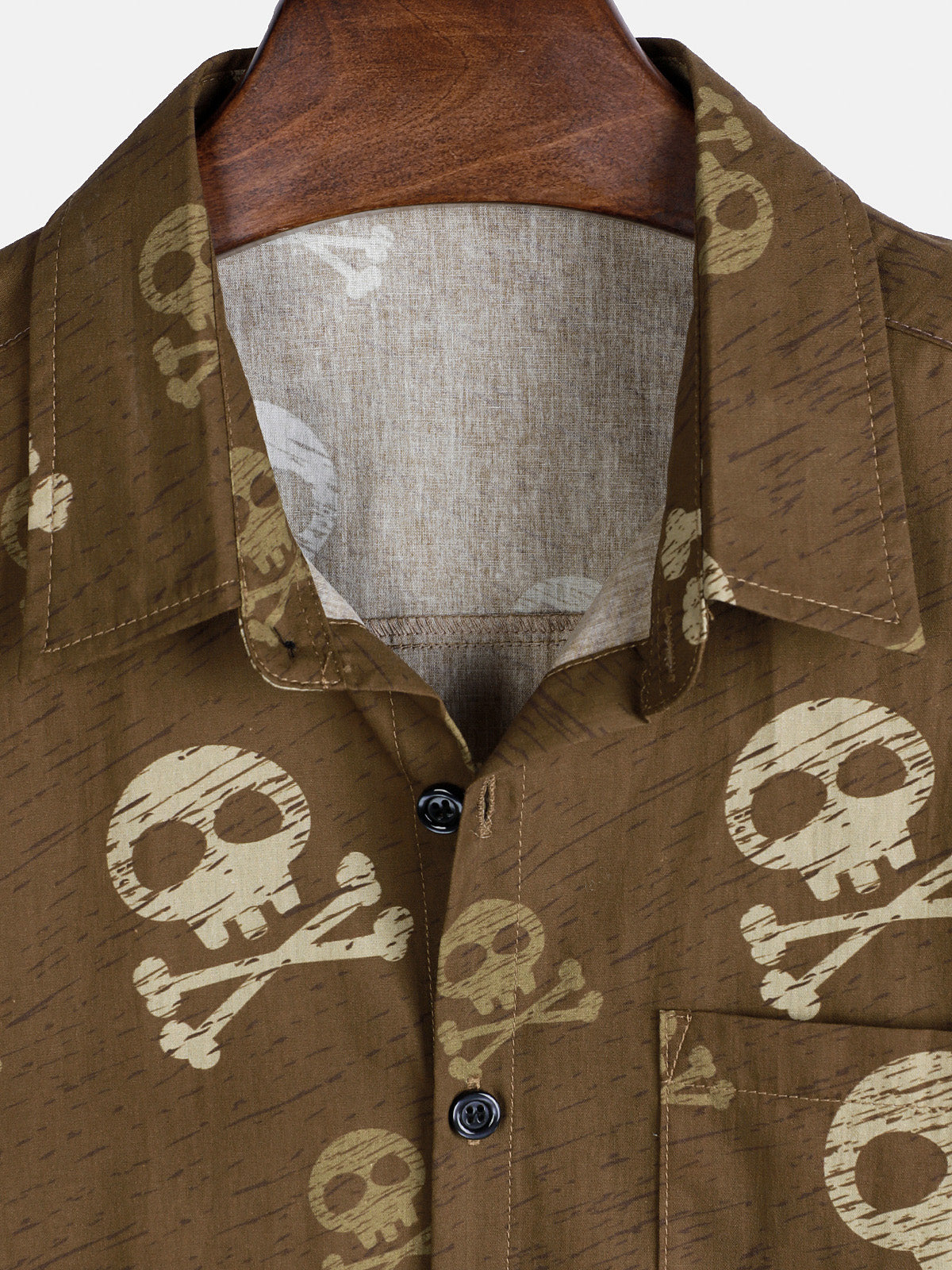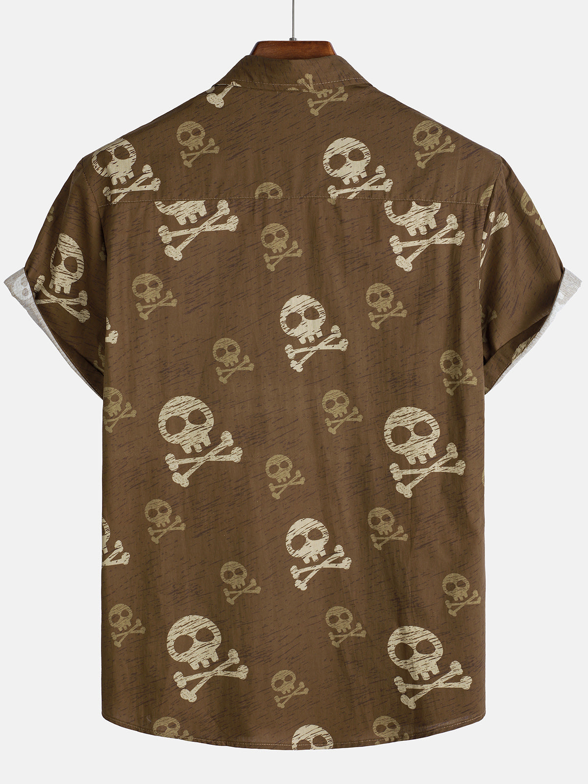 Men's Skull Brown Hawaiian Holiday Cool Short Sleeve Shirt