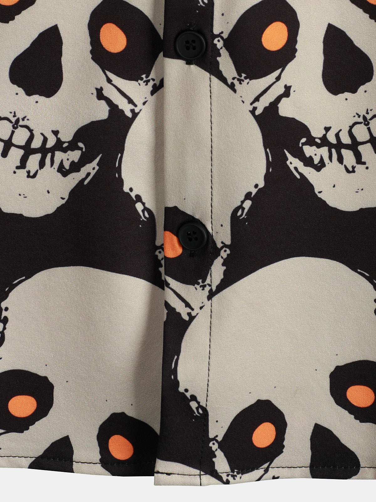 Men's Skull Cool Graphic Button Up Short Sleeve Punk Rock Art Black Hawaiian shirt
