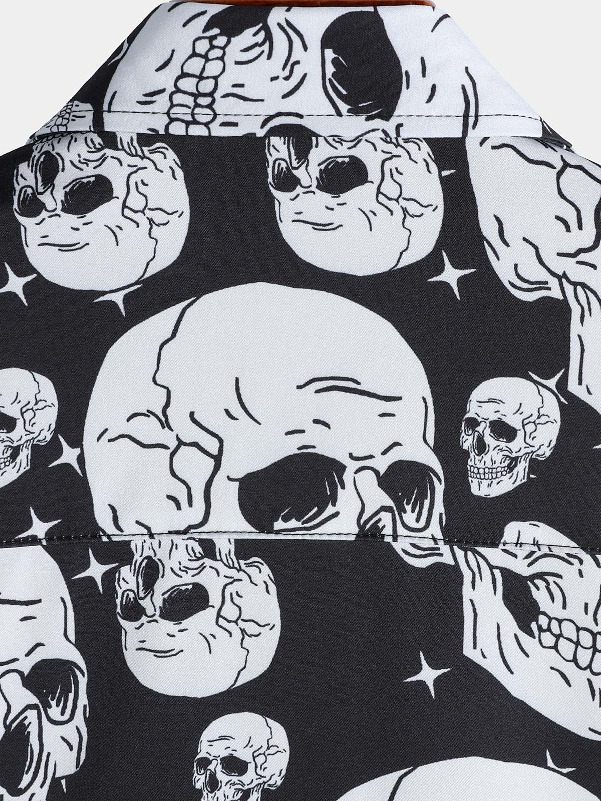 Men's Skull Graphic Button Up Short Sleeve Punk Rock Art Shirt