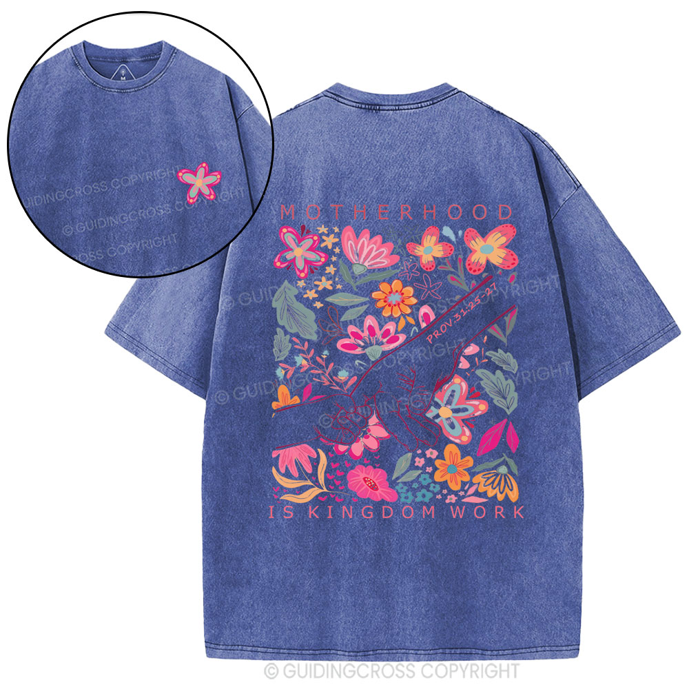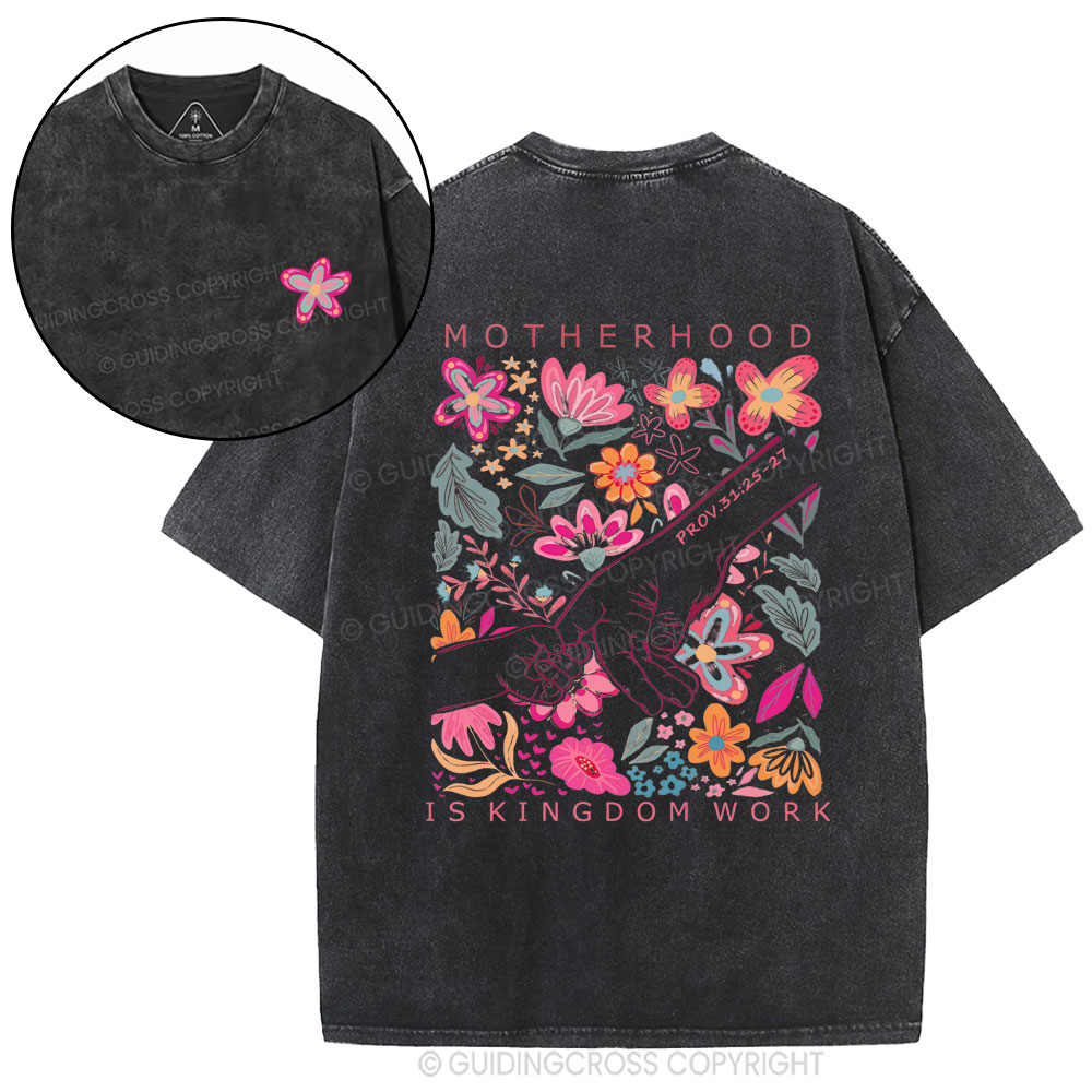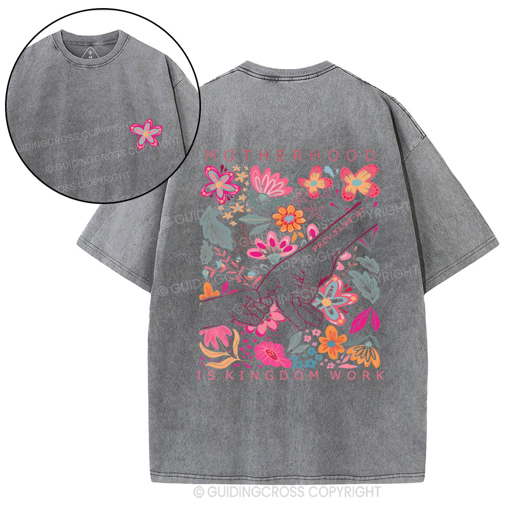 Motherhood Is Kingdom Work Flower Christian Washed T-Shirt