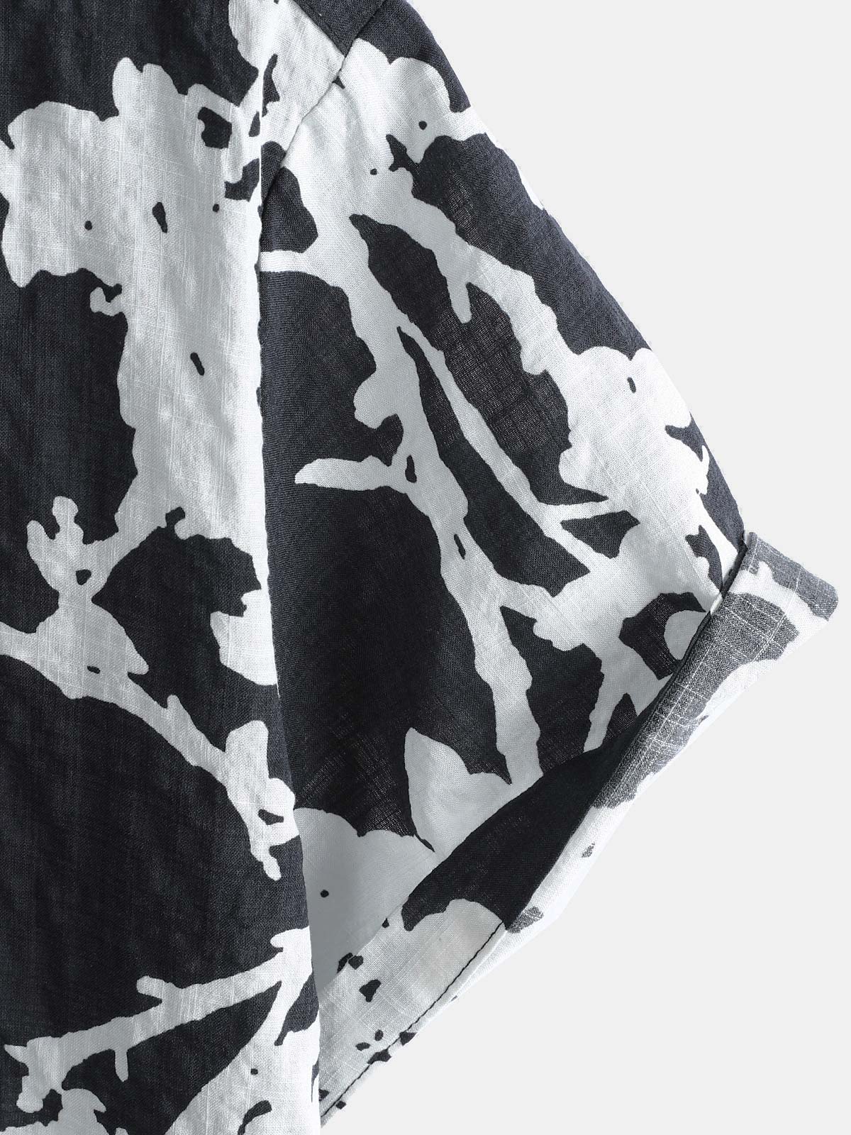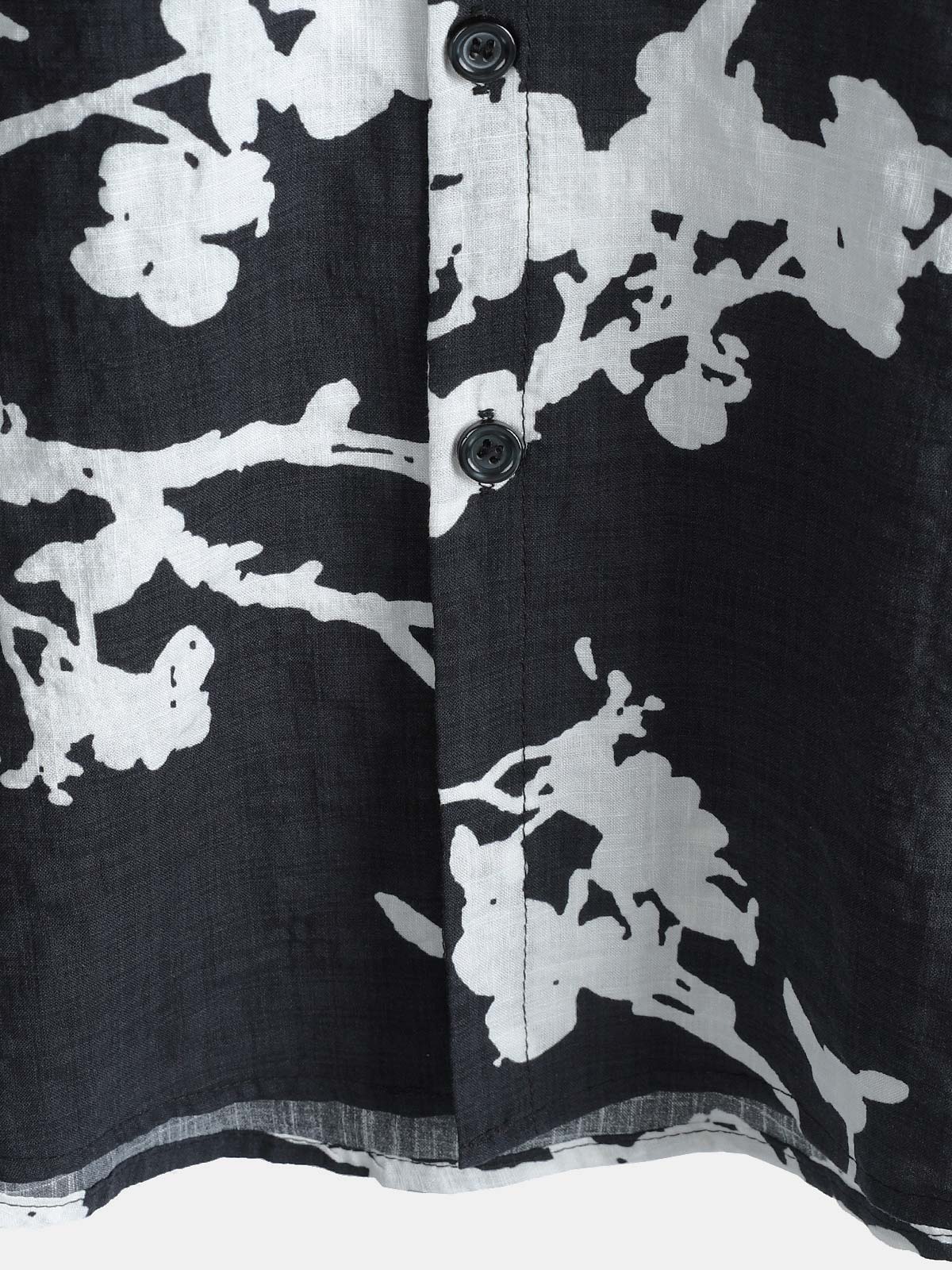 Men's Black and White Hawaiian Floral Breathable Cotton Casual Button Down Shirt