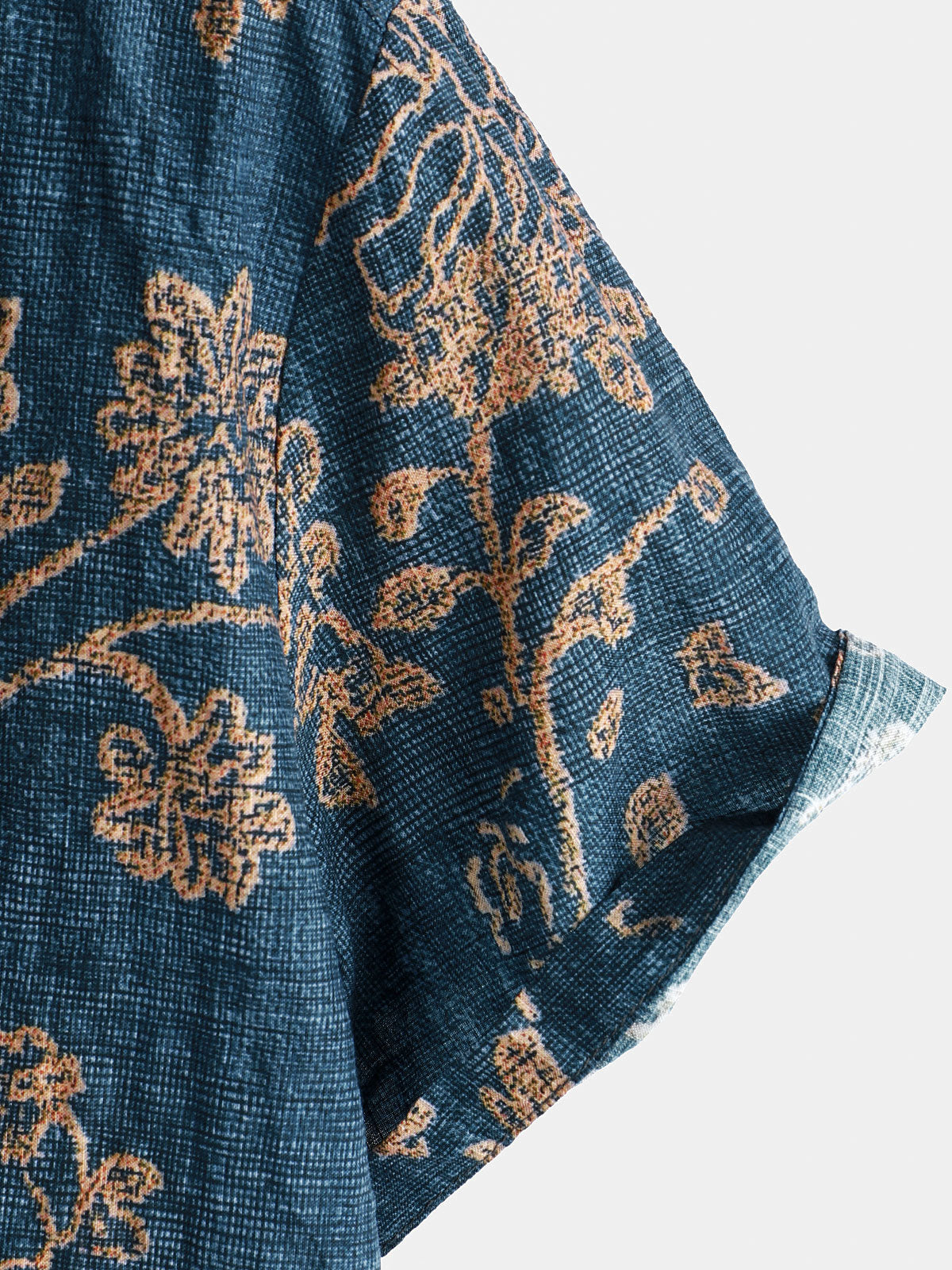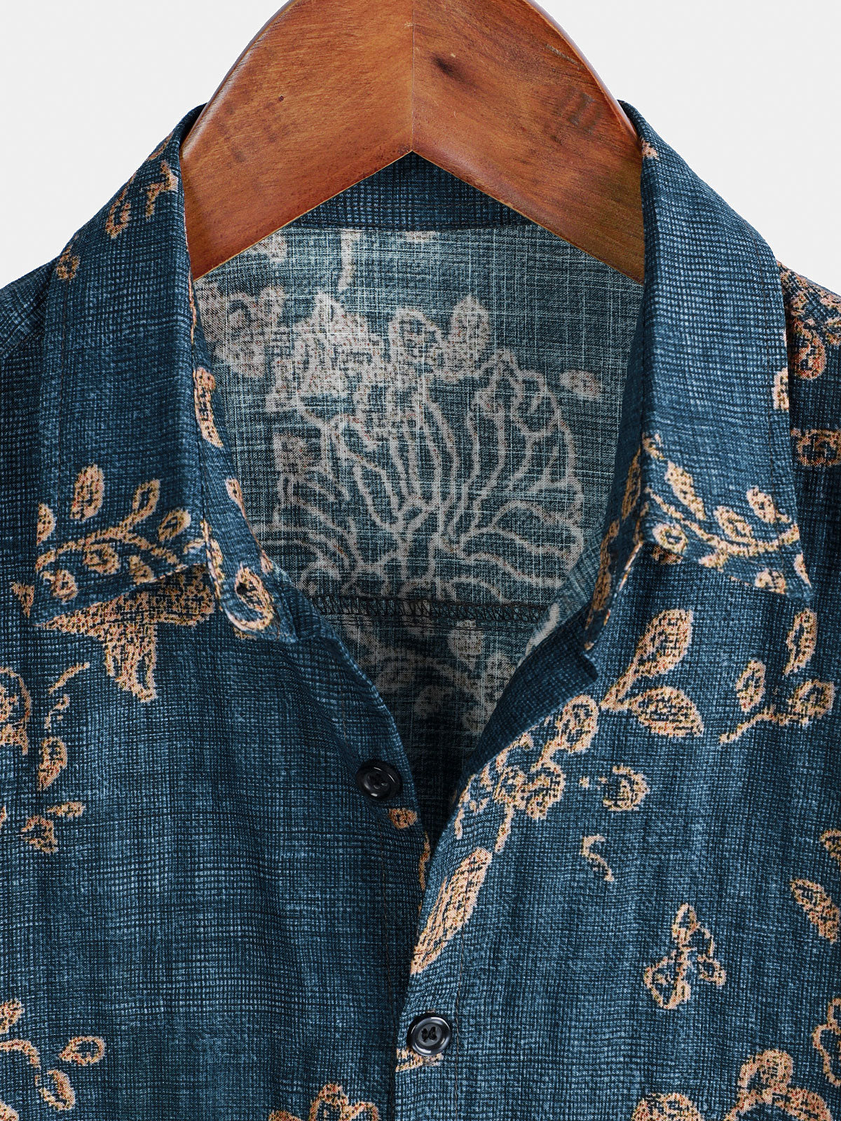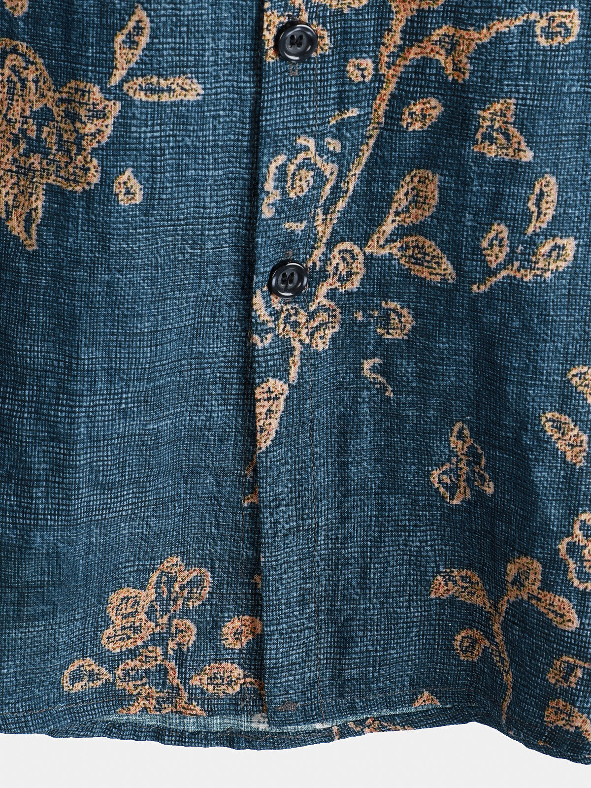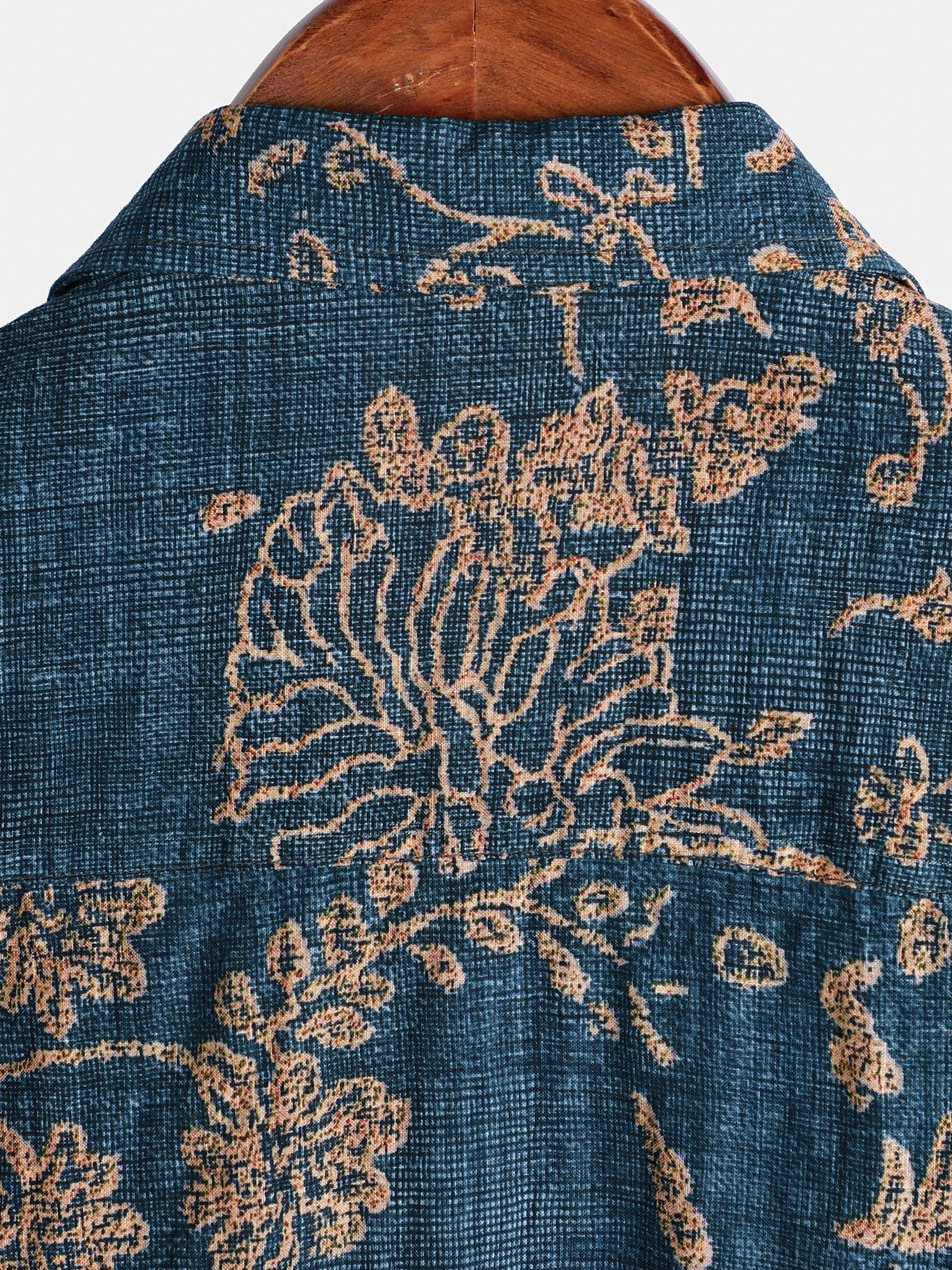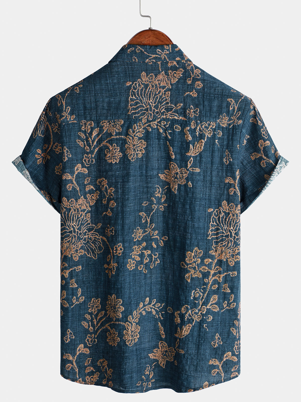 Men's Blue Floral Short Sleeve Breathable Button Up Shirt