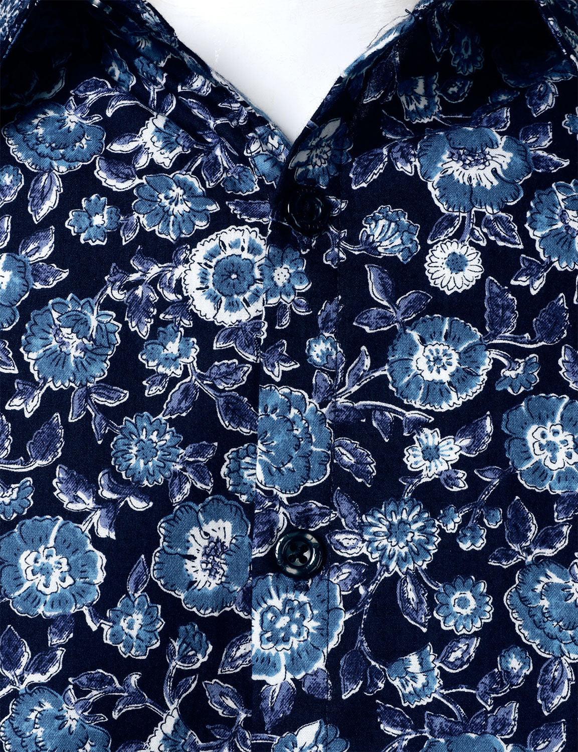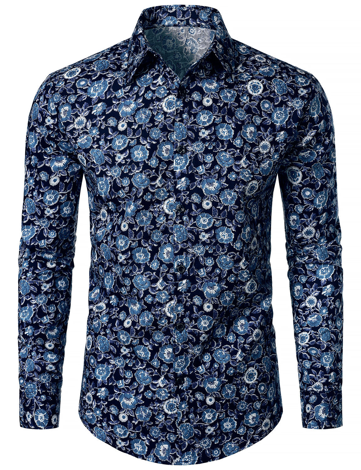 Men's Breathable Cotton 70s Floral Print Navy Blue Long Sleeve Shirt