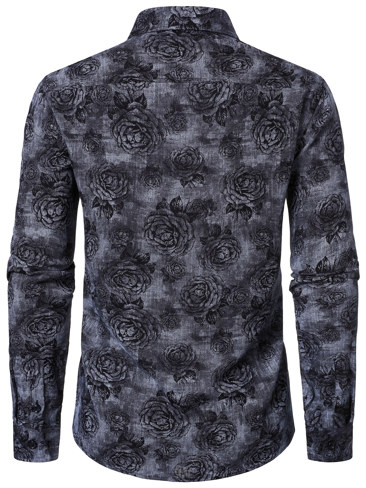 Men's Casual Rose Floral Long Sleeve Shirt