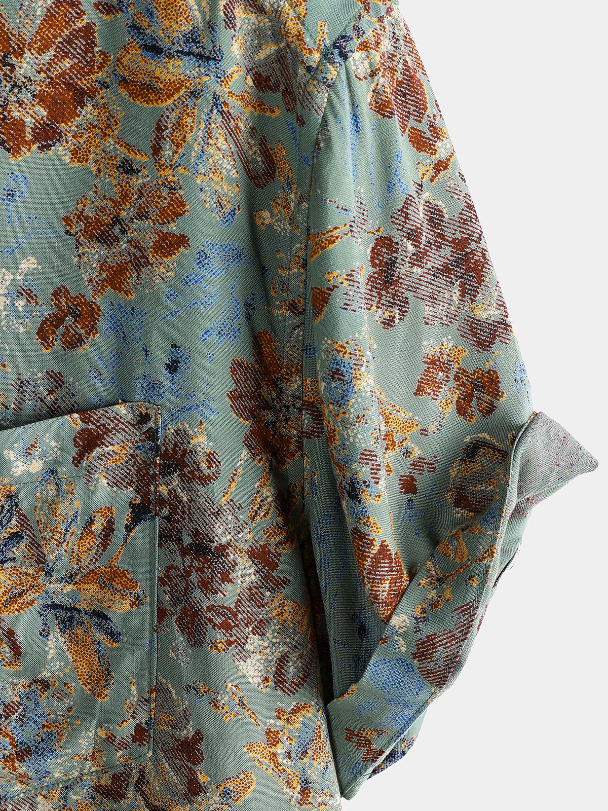 Men's Floral Print Rayon Pocket Short Sleeve Shirt