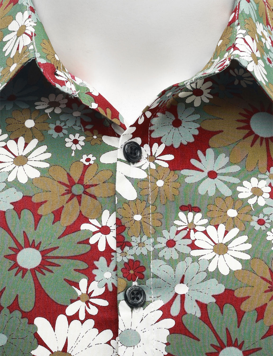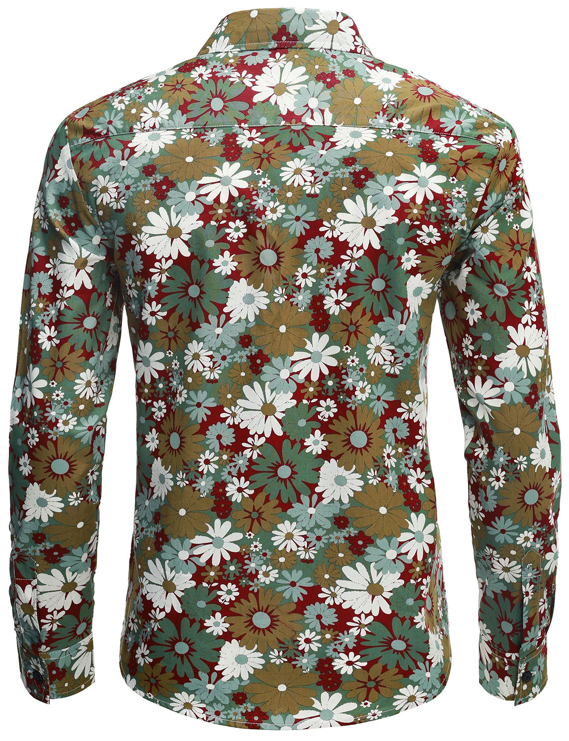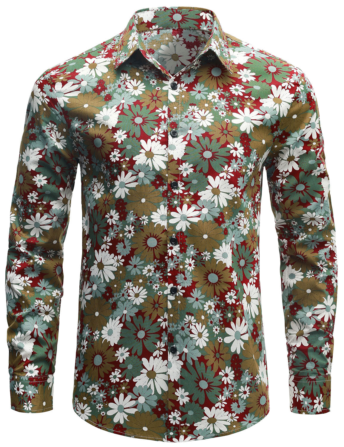 Men's Khaki Floral Cotton Button Up Long Sleeve Shirt